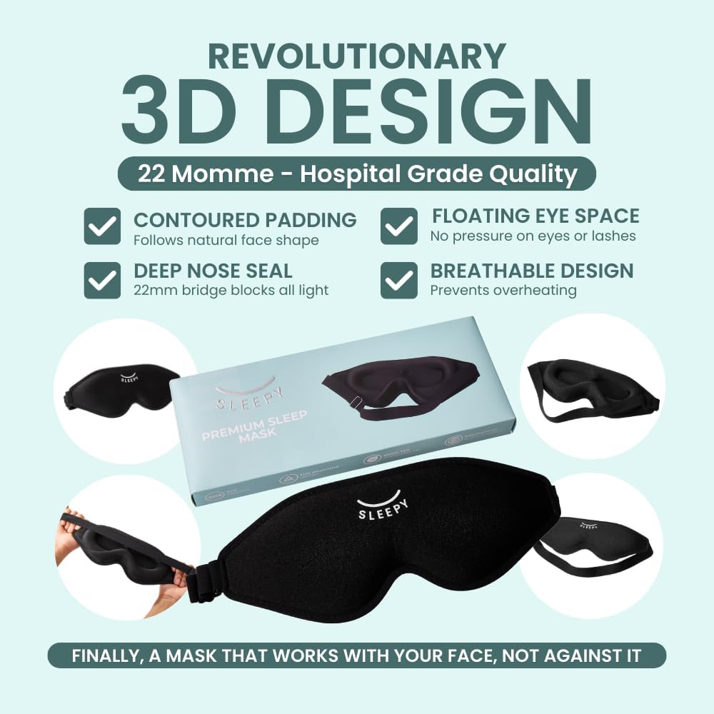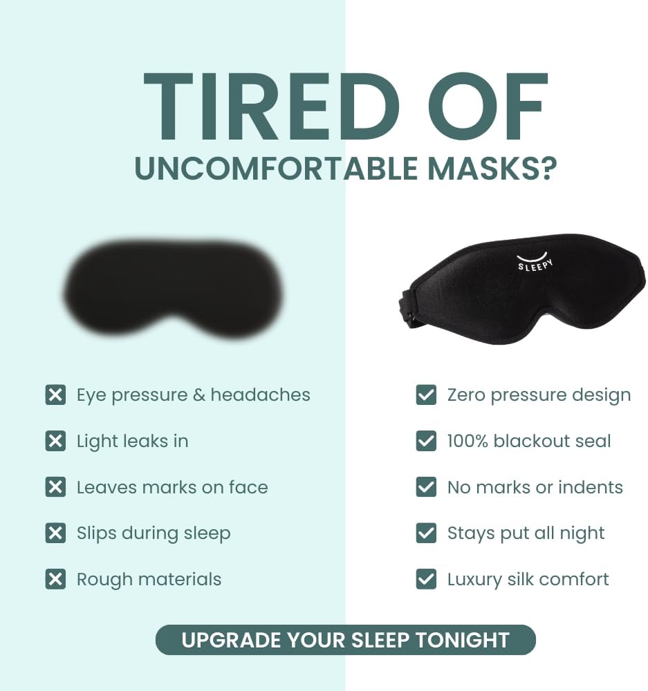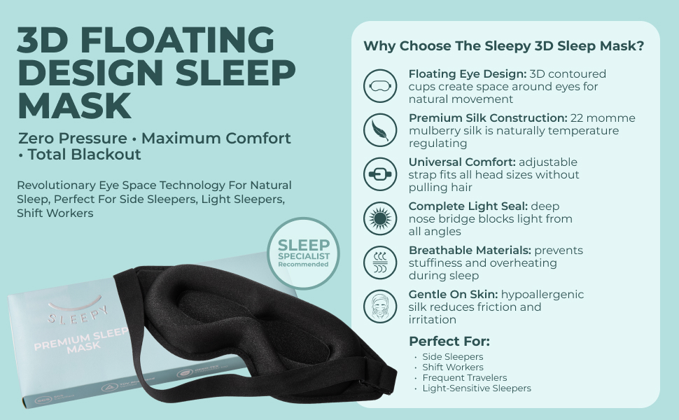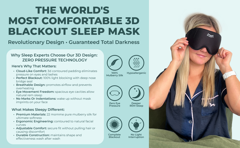 • [لا يوجد ضغط على العيون والرموش] يخلق الهيكل الانسيابي ثلاثي الأبعاد مساحة حول عينيك ورموشك بدلاً من الضغط عليها مثل الأقنعة المسطحة التقليدية. وهذا يسمح لعينيك بالتحرك بشكل طبيعي أثناء نوم حركة العين السريعة دون تهيج. التصميم الخالي من الضغط مفيد بشكل خاص للأشخاص الذين ينامون على الجانب والأشخاص ذوي الرموش الطويلة أو العيون الحساسة.