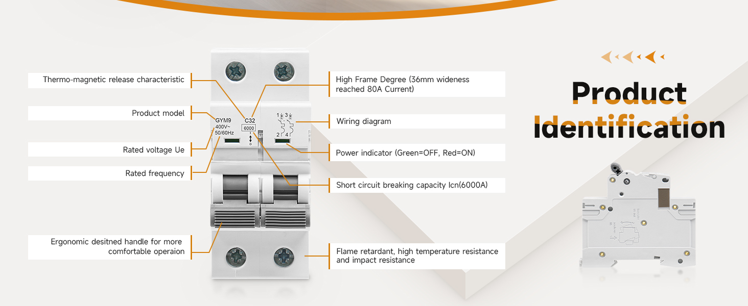 الوظائف: مفتاح فصل الطاقة الشمسية المصغر يستخدم لحماية دائرة التيار المتردد 110 فولت، 120 فولت، 220 فولت، 230 فولت من الحمل الزائد وتلف الدائرة القصيرة ومن تلف الحمل الزائد، كما يمكن استخدام قواطع الدائرة المصغرة للتحكم والعزل.