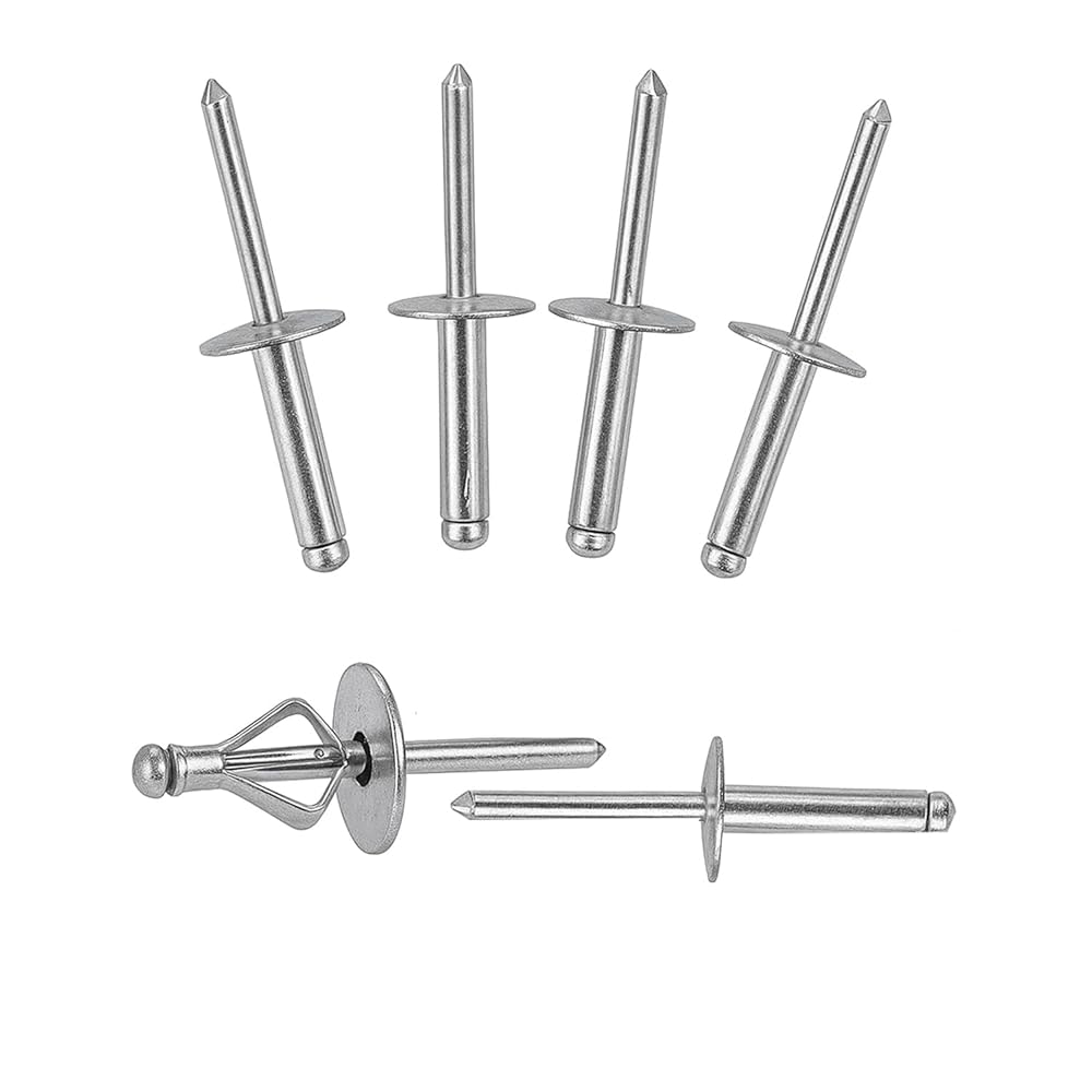 Upgrade your fastening projects with our3/16'' * 4/5'' Black Tri-Fold Large Head Rivets. These premium aluminum rivets feature a tri-grip bulb-style design that expands into three legs when set, creating a secure hold even in soft or thin materials. Perfect for kayaks, marine applications, trailers, and DIY repairs, these rivets resist vibration and provide long-lasting strength. The large head design distributes pressure evenly, preventing pull-through and giving a professional finish. Whether you're repairing a boat hull, mounting hardware, or joining panels, these rivets deliver durability and reliability you can count on.