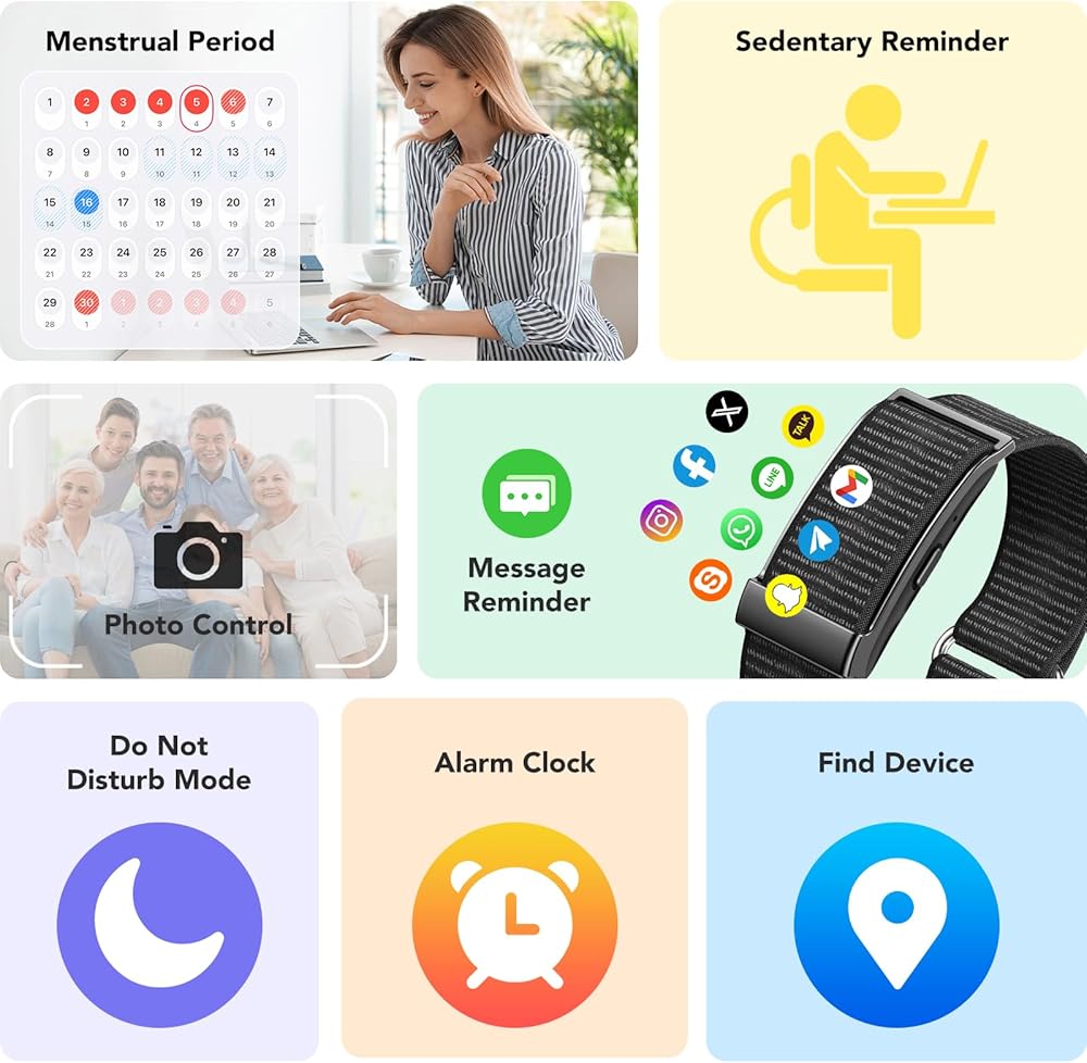 【تذكير فوري بالاهتزاز】ابق على اتصال بسلاسة مع تذكيرات الاهتزاز الذكية. يوفر سوار AJBLG الذكي تذكيرات بإشعارات المكالمات والرسائل النصية القصيرة والتطبيق (Whatsapp/Facebook/Skype) عبر مزامنة البلوتوث. تضمن الاهتزازات الخاصة اللطيفة أنك وحدك تشعر بالتنبيهات، دون أصوات مزعجة. لا تفوت أبدًا الرسائل المهمة في الاجتماعات أو التدريبات أو اللحظات الهادئة. حافظ على التركيز دون التحقق من الهاتف مع تجنب الإحراج الاجتماعي.