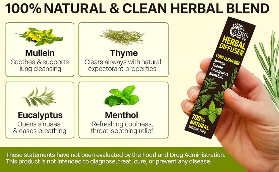 قلم نشر الروائح العلاجية بالأعشاب من مولين – جهاز العلاج العطري النباتي | مزيج طبيعي مع المولين والزعتر والأوكالبتوس والمنثول | رائحة نظيفة ومنعشة | لا إضافات صناعية