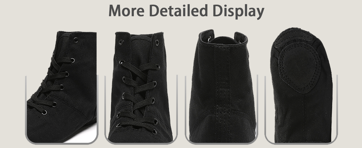 أحذية رقص الجاز بأربطة: يضمن تصميم أحذية الرقص بأربطة قابلة للتعديل ملاءمة مريحة، مما يضمن شعور أقدام الراقصين بالدعم والأمان.