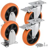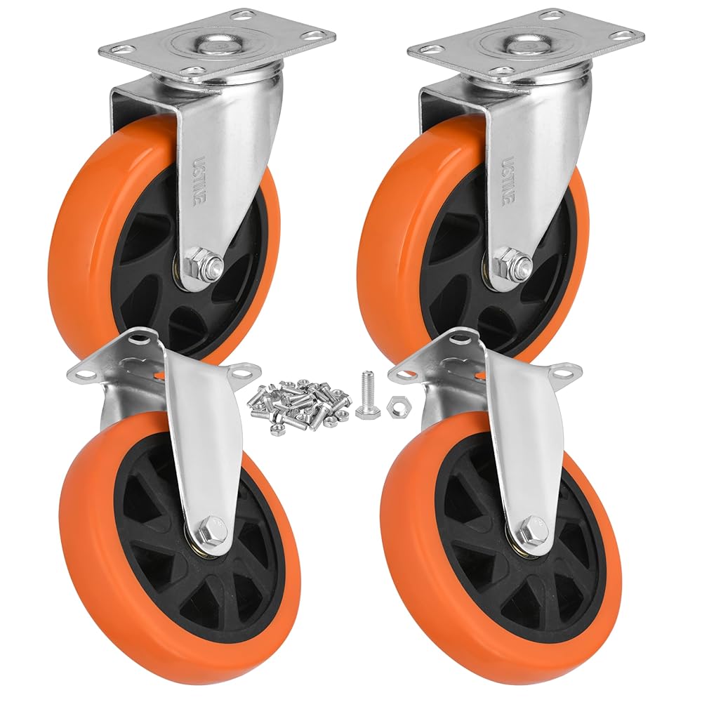 Perfect combination of casters: 2 Swivel Casters and 2 Rigid Casters, Swivel top plate will rotate in 360°. Rigid casters can roll backward and forward but cannot rotate. For best results, most clients will use a combination of swivel and rigid casters to give them the most favorable mix of stability and maneuverability.