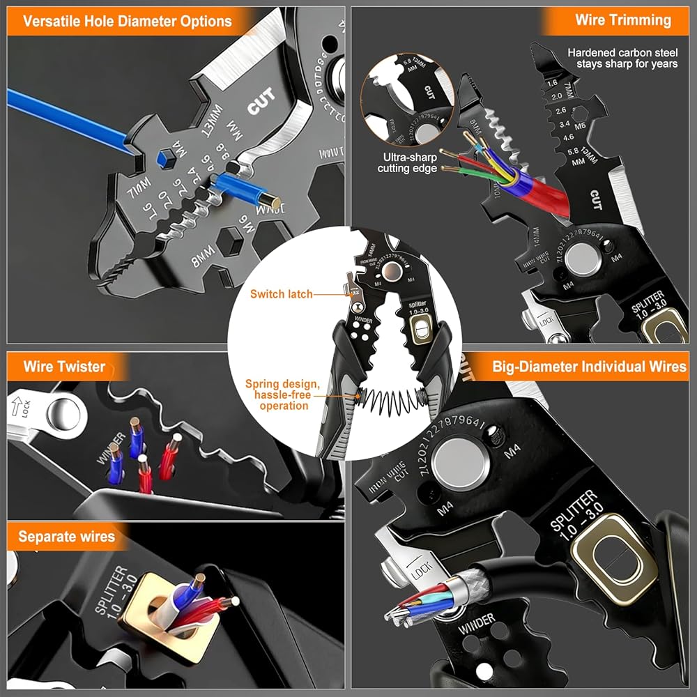 تجريد دقيق دون إتلاف قلوب الأسلاك: تتميز بفتحات تجريد معايرة، أدوات تجريد الأسلاك الدقيقة لدينا عبارة عن أدوات تعرية متعددة الاستخدامات وأداة احترافية لتجريد الأسلاك توفر قطعًا أنيقة في كل مرة. لا مزيد من التلف العرضي للقلب - مثالي لمهام القطع والتجريد والتجعيد والتقسيم والربط.