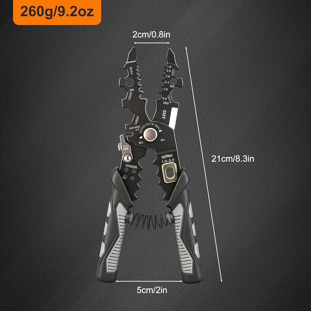 مادة ممتازة لمتانة طويلة الأمد: مصنوعة من الفولاذ المقاوم للصدأ عالي القوة مع معالجة بدرجة حرارة عالية، تعمل أداة التعرية متعددة الوظائف الخاصة بنا كمزيل أسلاك احترافي وكماشة كهربائية متينة - فهي تقاوم التشوه والصدأ والتآكل، وتناسب تمامًا الأسلاك التي يبلغ قطرها 0.8-3.2 مم لكل من المهام الصناعية والمنزلية.