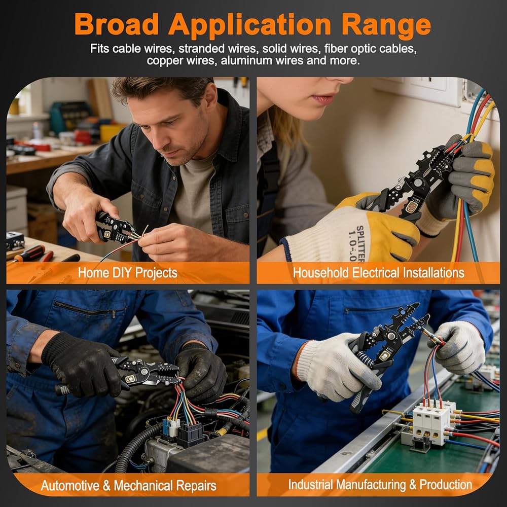 تطبيق واسع لجميع الاحتياجات الكهربائية: تعمل أداة تعرية الأسلاك شديدة التحمل هذه بمثابة أدوات تعرية أسلاك كهربائية موثوقة، وأدوات تعرية أسلاك متعددة الأغراض، وأدوات تعرية أسلاك معزولة آمنة للاستخدام الصناعي والكهربائي والمنزلي. تعامل مع الأسلاك النحاسية، وأسلاك الألومنيوم، والأسلاك المغلفة متعددة الطبقات، والأطراف المعزولة بأقصى قدر من الكفاءة.