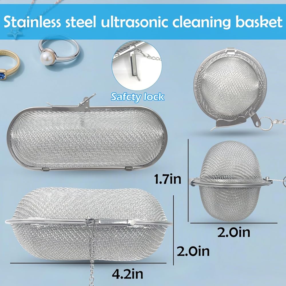 Discover the ultimate cleaning solution with our 4-Pack Ultrasonic Cleaner Baskets! Designed for efficiency and durability, this set includes two large baskets (4.2" x 2.0") and two small baskets (1.7" x 2.0"), made from premium stainless steel to resist rust and wear. The fine mesh construction ensures ultrasonic waves penetrate deeply, removing dirt and grime from jewelry, earrings, and small parts without causing damage. Key Features:Complete 4-Pack Value: Unlike standard sets, you get two large and two small baskets—perfect for handling multiple items simultaneously. Enhanced Cleaning Performance: The mesh design allows optimal fluid flow and ultrasonic energy transmission for spotless results. Safety First: Each basket features a secure lock to prevent items from shifting or falling out during operation. Wide Compatibility: Works with most ultrasonic cleaners in the market, including jewelry cleaners and industrial parts washers.