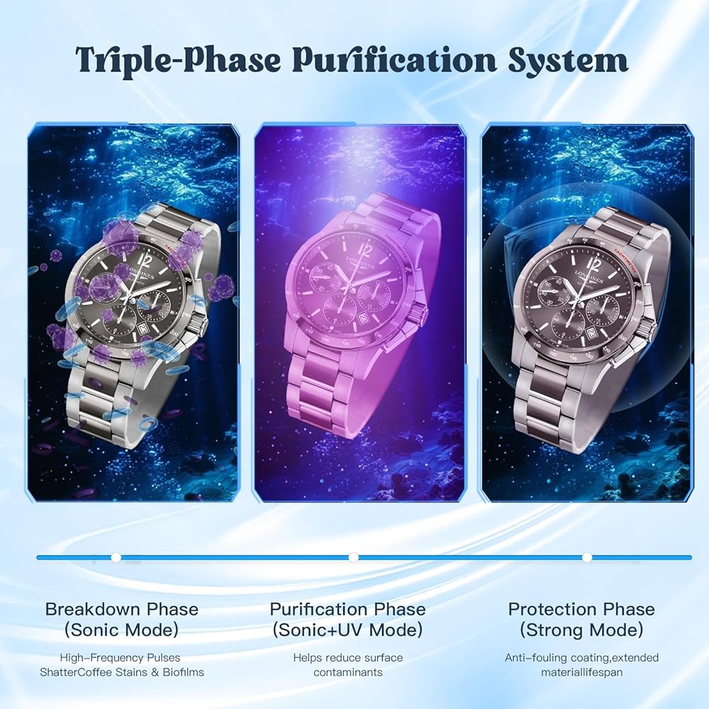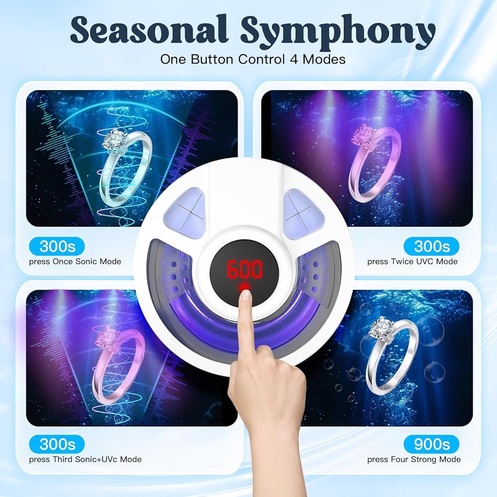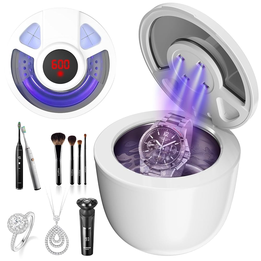 2.[الموجات فوق الصوتية + الأشعة فوق البنفسجية] يستخدم منظف الحلقة الواقية لدينا الأشعة فوق البنفسجية + 45 كيلو هرتز بالموجات فوق الصوتية، وهي نسخة محسنة من الأشعة فوق البنفسجية، بتردد بالموجات فوق الصوتية يبلغ 45 كيلو هرتز. بالمقارنة مع المنتجات الأخرى، فإن ترددنا أعلى، وهو ما يعني أيضًا قدرة تنظيف أعلى، وإزالة الجزيئات/الأوساخ بشكل فعال من الخواتم، والأقراط، والمثباتات، والمصففات، ورؤوس فرشاة الأسنان الكهربائية، وحتى المجوهرات.