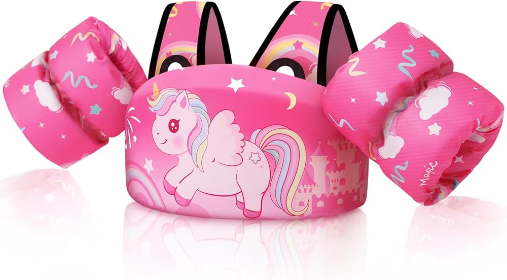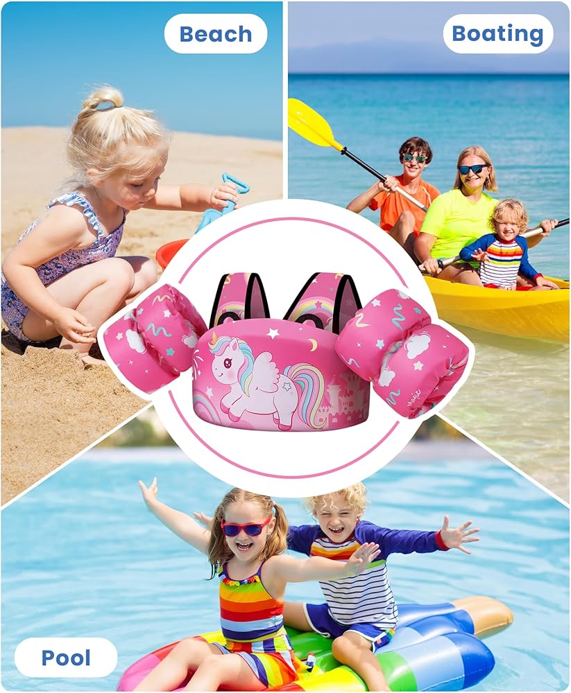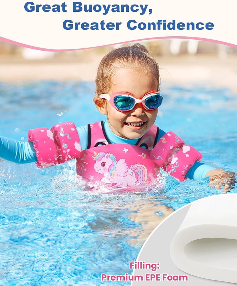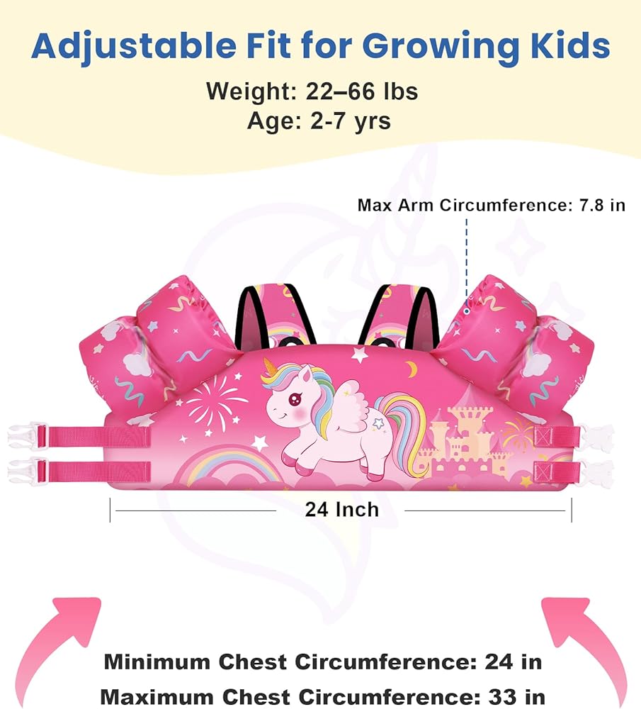 سترة سباحة للأطفال الصغار تطفو على الماء للفتيات بوزن 20-30-50-66 كجم - تطفو على حمام السباحة للأطفال مع حزام الكتف يطفو على الذراع، وتساعد على السباحة لأعمار 2-3-4-5-6-7 سنوات