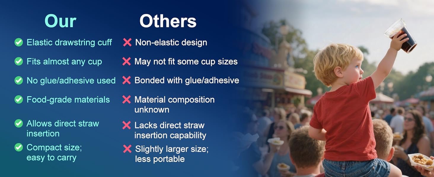 • مقاس واحد يناسب معظم الأشخاص: مناسب للأكواب بوزن 8 أونصة - 24 أونصة، هذا الغطاء البلاستيكي القابل للتمدد يناسب معظم أكواب المشروبات الورقية والبلاستيكية المستخدمة في المتنزهات والحفلات الموسيقية والرياضة والأماكن والسفن. مثالية لمشروبات النافورة أو العصائر أو القهوة المثلجة أثناء التنقل.