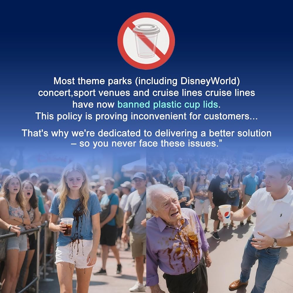 • غطاء بلاستيكي بديل لسفر ديزني آند كروز مصمم للمتنزهات والرحلات البحرية والحفلات الموسيقية والأماكن الرياضية التي حظرت الأغطية البلاستيكية. يحافظ هذا الغطاء البلاستيكي القابل لإعادة الاستخدام والآمن على الطعام على مشروباتك محكمة الإغلاق ونظيفة - وهو مثالي لعالم ديزني وديزني لاند