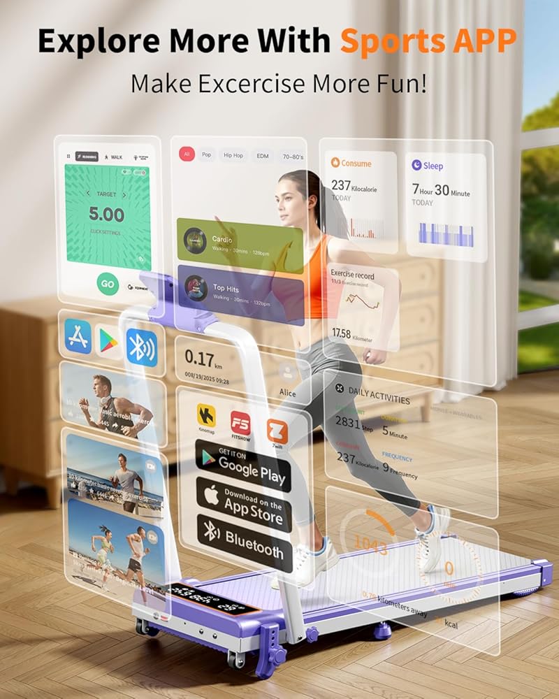 شاشات LED مزدوجة وتكامل التطبيقات الذكية: ابق على اطلاع كامل بشاشات LED المزدوجة الموجودة على منصة المشي الخاصة بك مع الميل، بما في ذلك شاشة عرض كبيرة للمقاييس في الوقت الفعلي مثل السرعة والوقت والسعرات الحرارية. تحكم في تمرينك من خلال وحدة التحكم أو جهاز التحكم عن بعد أو التطبيق الذكي. اتصل عبر البلوتوث للوصول إلى التدريب المخصص، والمسارات الافتراضية ذات المناظر الخلابة، وتحديات اللياقة البدنية التفاعلية - وكلها مصممة لتحفيزك وتفاعلك من المنزل.