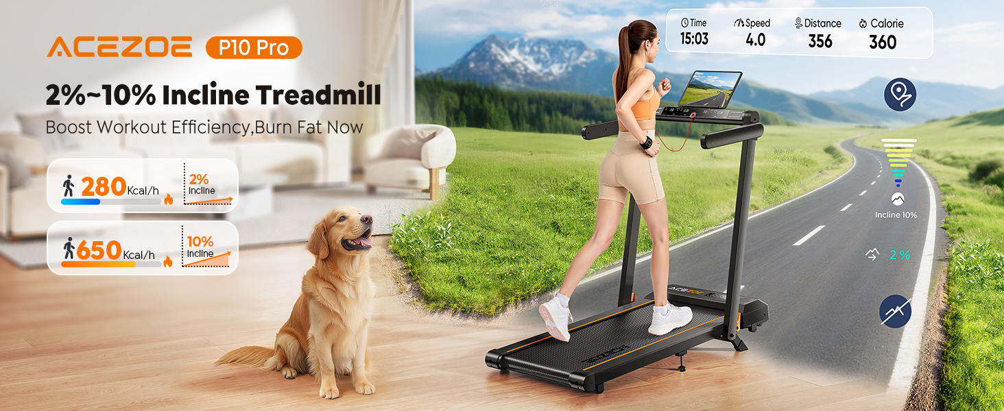 • 【جهاز المشي المطور بنسبة 10%】على عكس جهاز المشي القياسي، تتميز وسادة المشي المطورة من ACEZOE ذات الميل بمنحدر مزدوج قابل للتعديل بنسبة 2% و10%، مما يسمح لك بمحاكاة المشي لمسافات طويلة أو المشي على الجبال من راحة منزلك. تعمل وسادة المشي المائلة على تعزيز حرق السعرات الحرارية وكفاءة فقدان الدهون بنسبة تصل إلى 70%، مما يساعدك على تحقيق أهداف اللياقة البدنية بشكل أسرع.