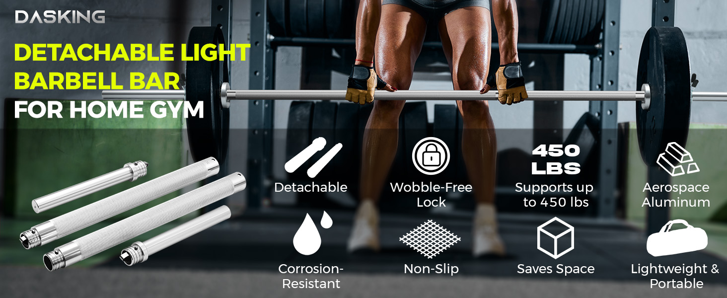 DASKING 4ft/4.9ft Barbell, 1-Inch Standard Detachable Bar, Portable Strength Training Bar for Weightlifting, Squat, Bench Press, Home Gym, 450LBS, Includes Silent Collars