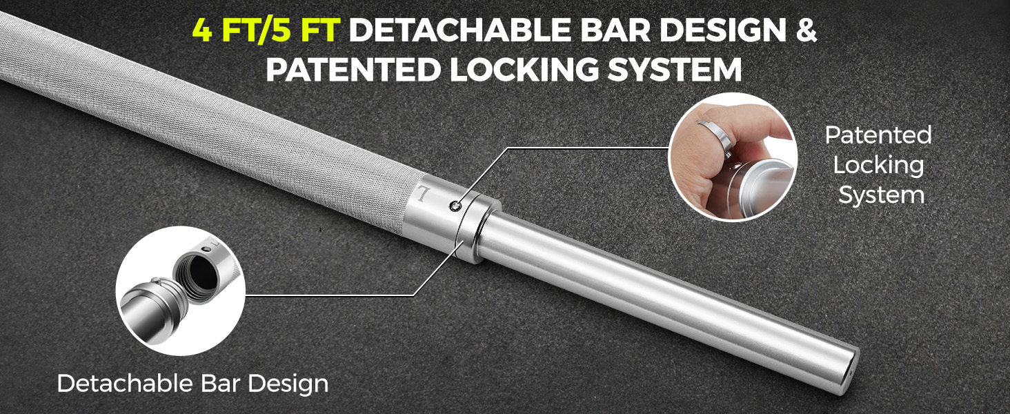 🤸 [All-in-One Detachable Gym Bar] This gorgeous, space-saving bar is fully detachable for limitless workouts. Perfect for Olympic lifting, powerlifting, and everything from curls and rows to deadlifts and hip thrusts. Unlock professional versatility in your home gym!
