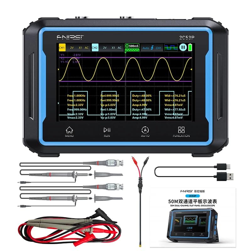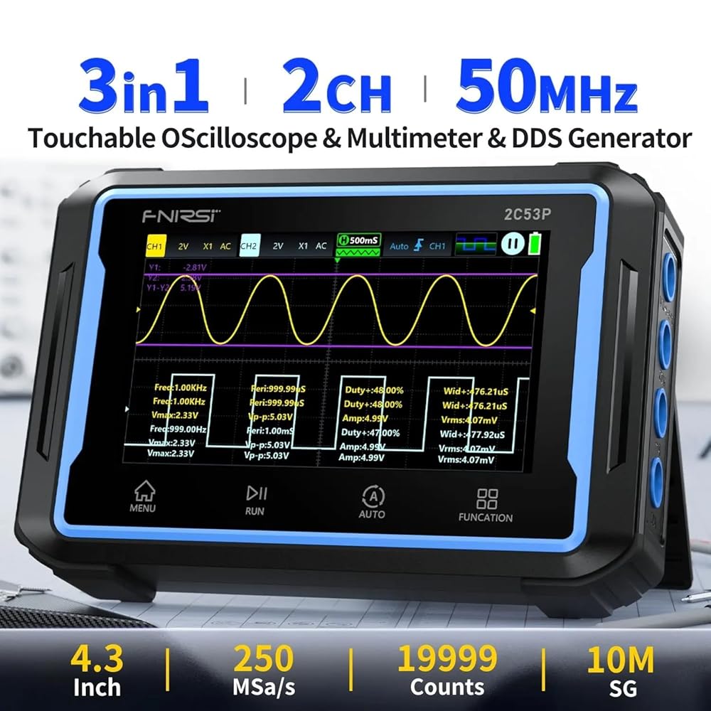 • Comprehensive Testing Solution: The 2C53P provides oscilloscope, multimeter and signal generator functions in a single device, allowing you to test, measure and generate signals for a wide range of electrical and electronics applications.