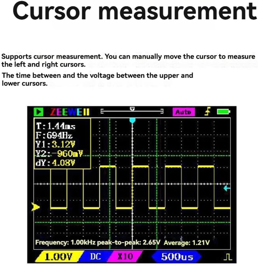 Supports cursor measurement, and the cursor can be moved manually to measure the time between the left and right cursors and the voltage between the upper and lower cursors