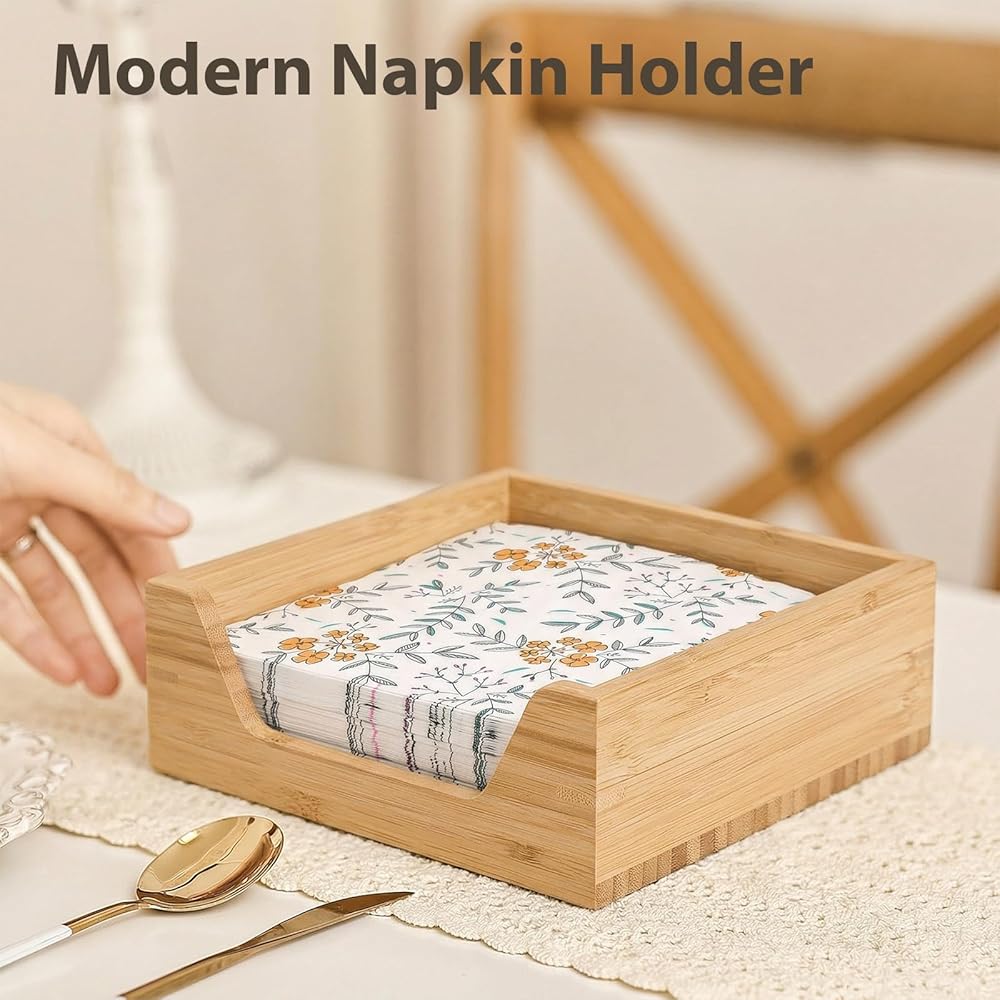 ديكور أنيق لسطح الطاولة للمساحات المنزلية: يضيف حامل مناديل الخيزران لمسة من الرقي الحديث إلى سطح المطبخ أو طاولة الطعام. تصميمه الأنيق يكمل أنماط الديكور المعاصرة والريفية
