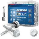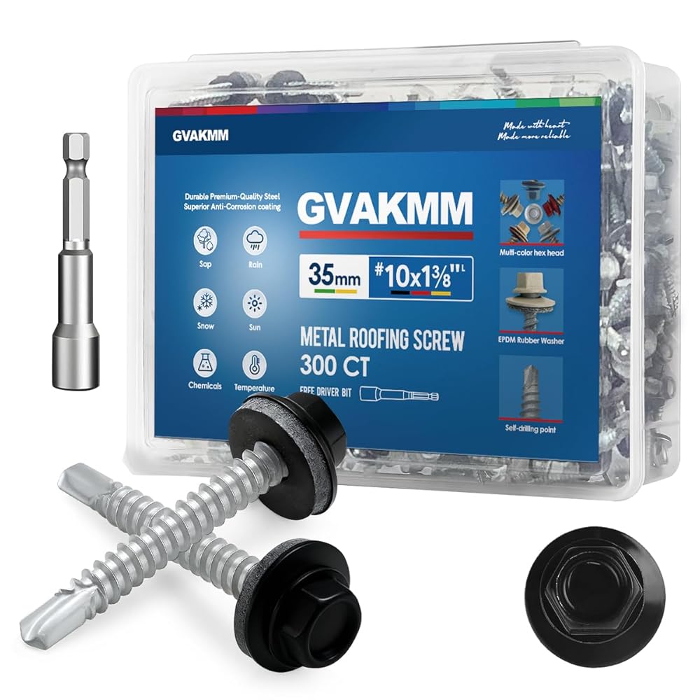 أبعاد دقيقة لملاءمة آمنة - مصممة برأس سداسي قياسي مقاس 5/16 بوصة (8 مم) وغسالة EPDM كبيرة بقطر 0.54 بوصة للحصول على أقصى قدر من التغطية. يتميز المسمار رقم 10 بطول 1-3/8 بوصة (35 مم)، مما يجعله الحجم المثالي لتثبيت ألواح السقف المعدنية على العوارض الخشبية أو الخشب الرقائقي دون بروز مفرط.