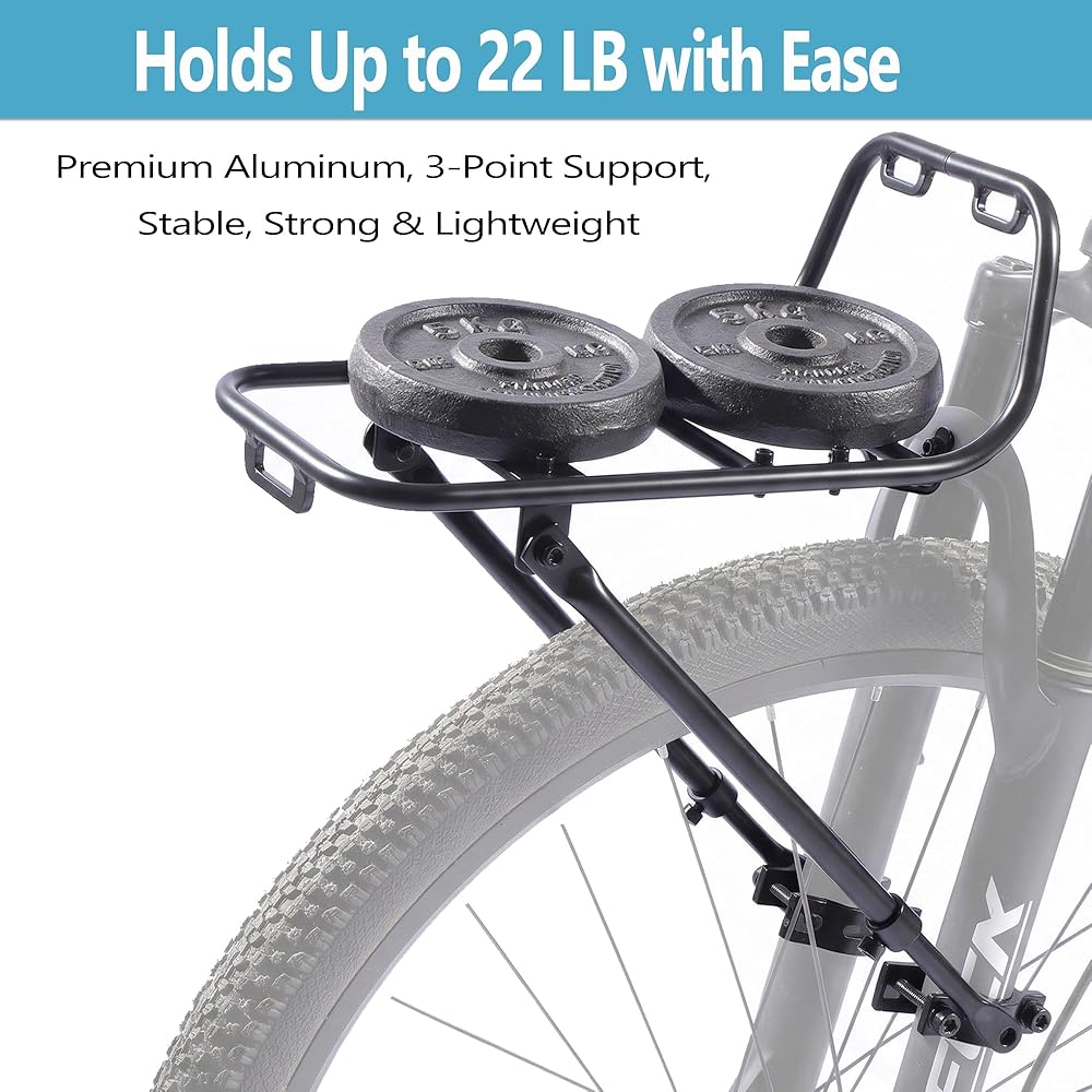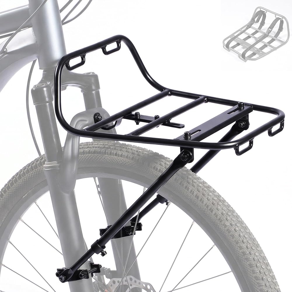 • 【SOLID & STURDY】 This bike front rack is constructed with durable 6061-T6 aluminum, strong and sturdy enough to maintain stiffness without weighing your frame down. It holds up well to daily use and minor impacts, much sturdier than ordinary flimsy racks for long-lasting performance. Recommended maximum load is 10 kg / 22.05lbs in total. DO NOT overload. Overloading or not securing items properly may cause difficulty in steering and/or loss of bicycle control which could result in injury.