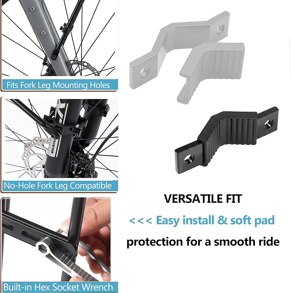 • 【COMPATIBILITY】 The rack mounts firmly to the fork crown and is fully adjustable in height, front, rear and side positions. It comes with special clamps that work on most front forks—with or without eyelets on fork legs, as long as the fork crown has mounting holes. We also provide dedicated screws for different bike types to ensure a better and more secure fit.