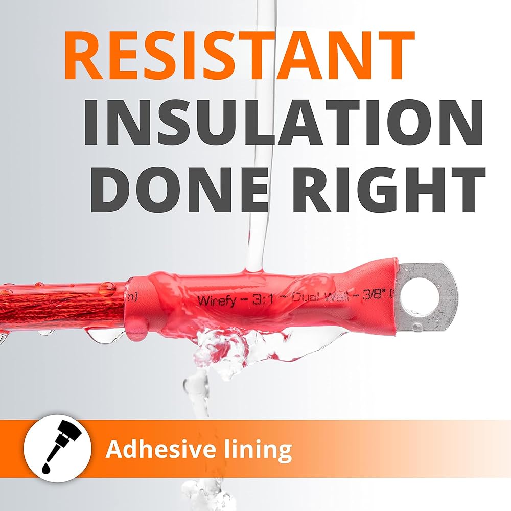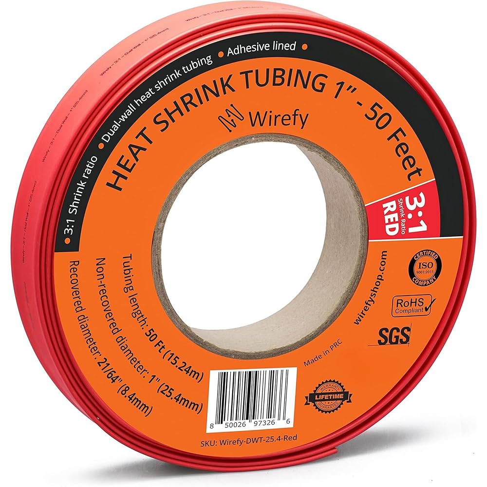 Wirefy 1 "أنابيب الانكماش الحراري - قطر كبير - نسبة 3: 1 - مبطنة بمادة لاصقة - أنابيب صناعية قابلة للانكماش بالحرارة - أحمر - لفة 50 قدم