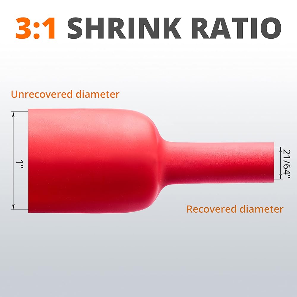 • نسبة الانكماش 3:1 - تستعيد 1/3 من قطرها الأصلي، وتصنع إغلاقًا محكمًا. يزيل مشكلة عدم انكماش الأنابيب 2:1 بشكل محكم بما فيه الكفاية.