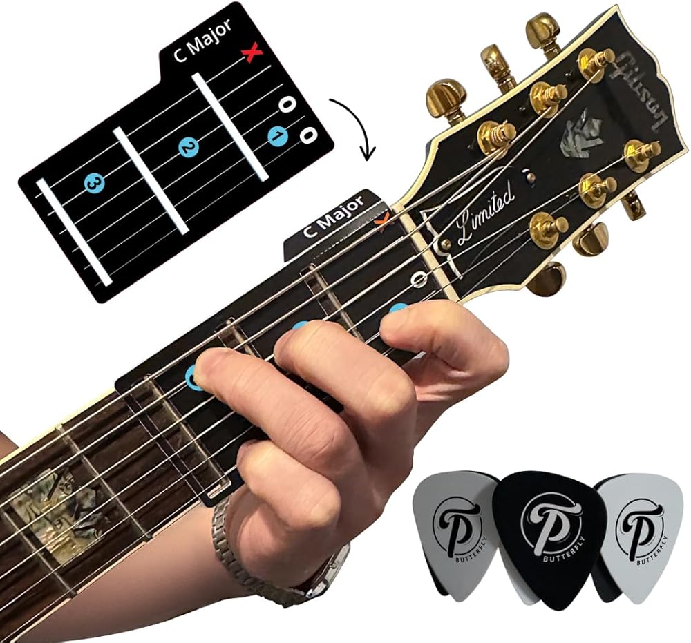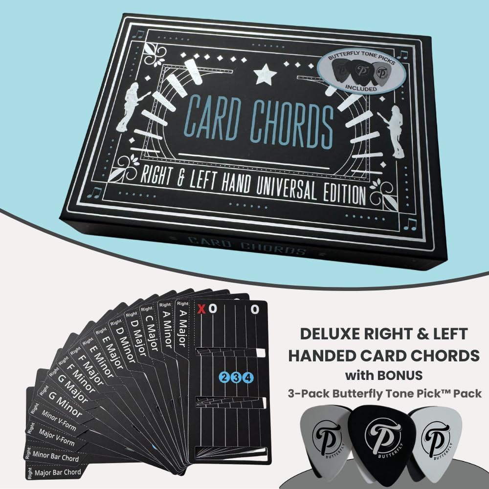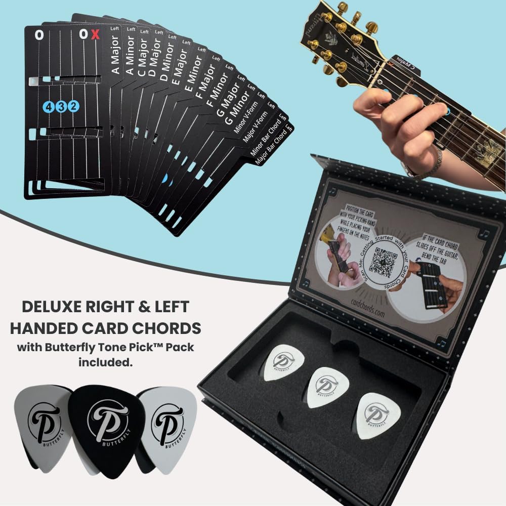 Guitar Card Chords with Tone Picks Deluxe Edition with Case | Right & Left Handed Guitar Players (Fits All Guitars) Play The Guitar While The Card is on The FRETBOARD