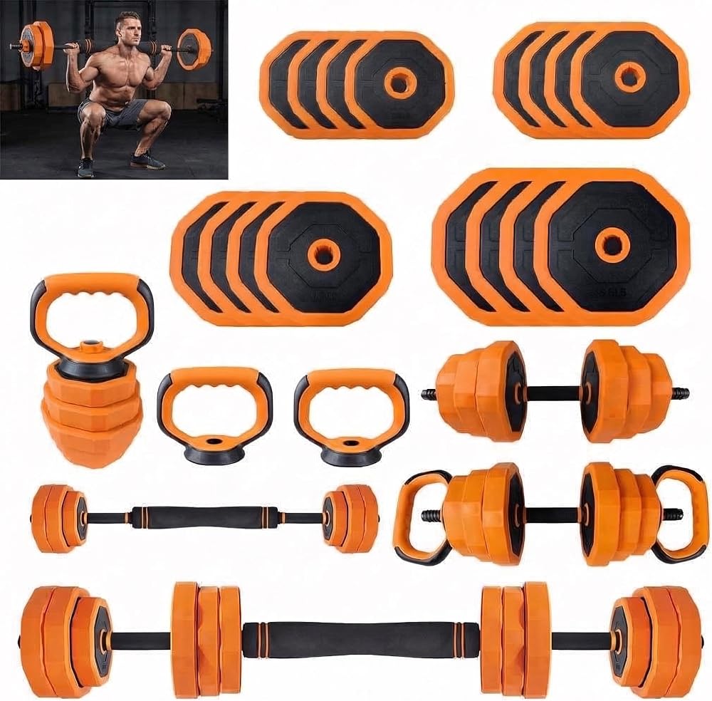 2.5 lbs *4,3.5 lbs*4,4.5 lbs*4,5.5 lbs*4, Fixed Nut*8,Dumbbell Bar*2, Foam Connector*1,Kettle Rod*1, Push-up Stand*2