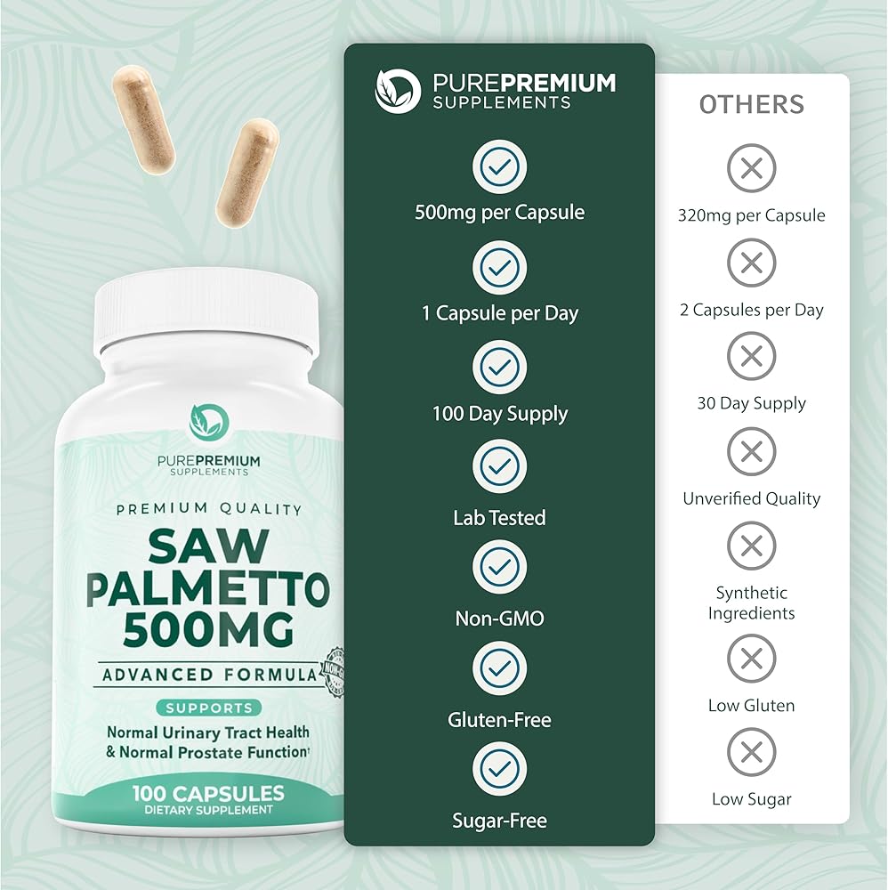 جودة ممتازة، Go PurePremium - ختم الجودة الذي يمكنك الوثوق به. جميع مكملاتنا الغذائية مُصممة في الولايات المتحدة الأمريكية. مصنوع بتركيبة طبيعية وقوية من مستخلص بالميتو المنشاري 500 مجم مع مركب مسحوق التوت القوي. خذ 1 في اليوم!