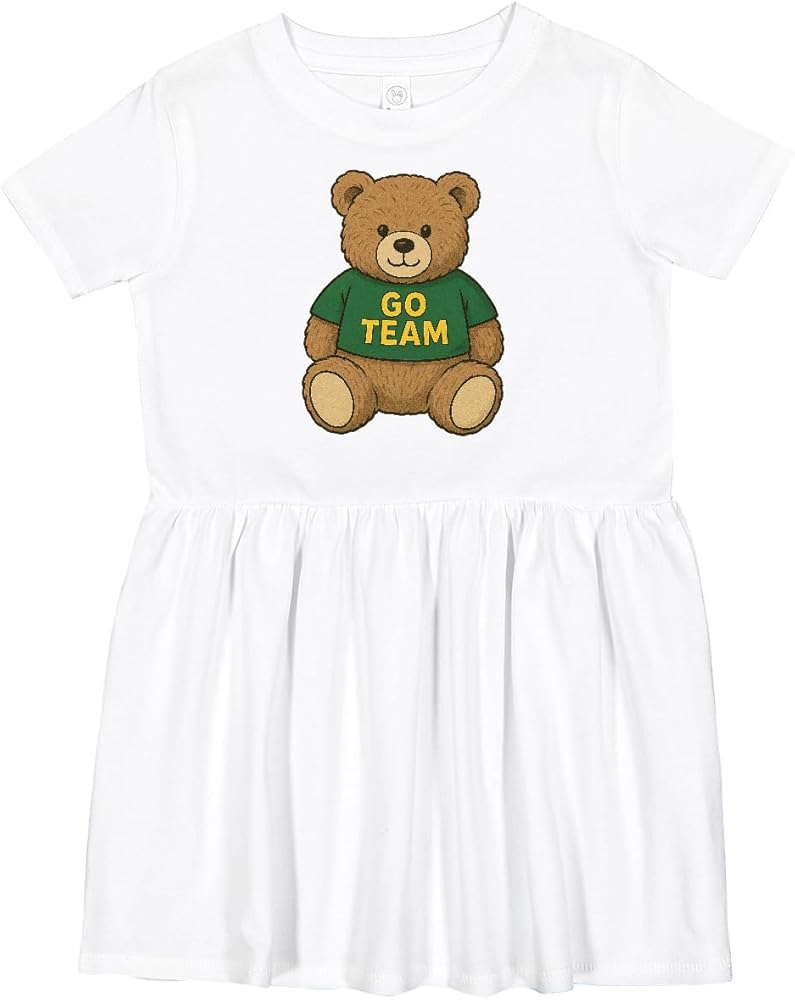 Cheer on your favorite team with this adorable teddy bear Toddler Dress. Perfect for showing support in a fun and playful way.