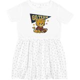 Cheer on your favorite team with this adorable lion cub and football design. Perfect for young sports fans, the Toddler Dress features vibrant colors and a playful spirit, making it a great addition for game days.