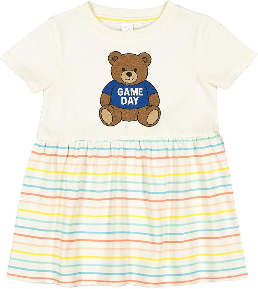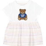 This adorable teddy bear proudly sports a 'Game Day' shirt, making it a fun and charming addition to any Infant Dress. Perfect for little fans and sports enthusiasts alike.