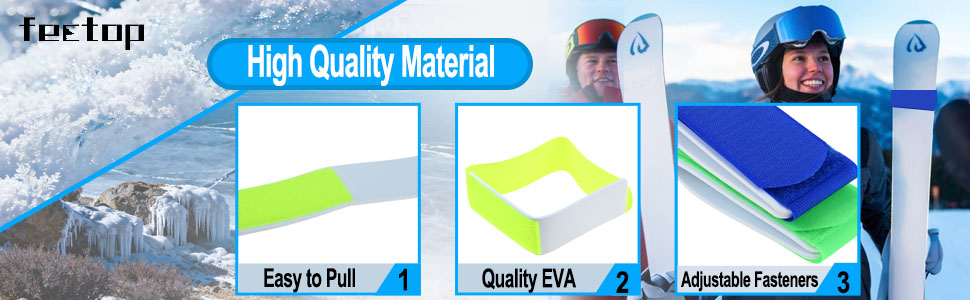 【أشرطة تزلج متينة وواقية】أحزمة التزلج هذه مصنوعة من مواد عالية القوة مع بطانة داخلية من إسفنج EVA، والتي ليس من السهل كسرها أو تجعيدها، موثوقة ومتينة. تقلل هذه الأشرطة بشكل فعال من ملامسة السطح وتمنع الاحتكاك بين الزلاجات أو ألواح التزلج على الجليد. الأداء بين جلسات الصيانة.