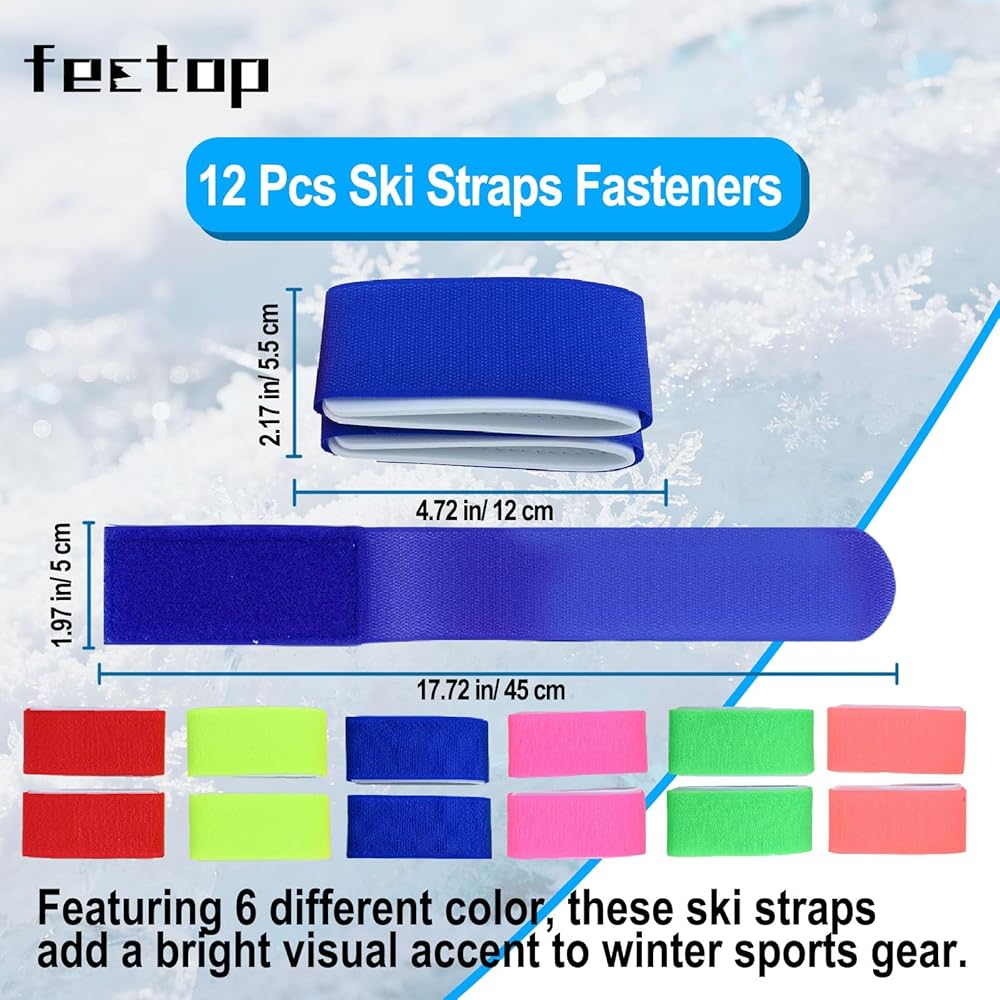【تشمل العبوة】سوف تحصل على 12 مشبكًا لحزام التزلج في 6 ألوان كلاسيكية - شريطان لكل لون - مما يوفر خيارات عملية وخيارات احتياطية. تعمل هذه الأشرطة متعددة الاستخدامات على ربط الزلاجات أو ألواح التزلج أو الأعمدة بشكل آمن، كما أن تصميمها خفيف الوزن يجعلها سهلة الحمل ومشاركتها مع الأصدقاء على المنحدرات.