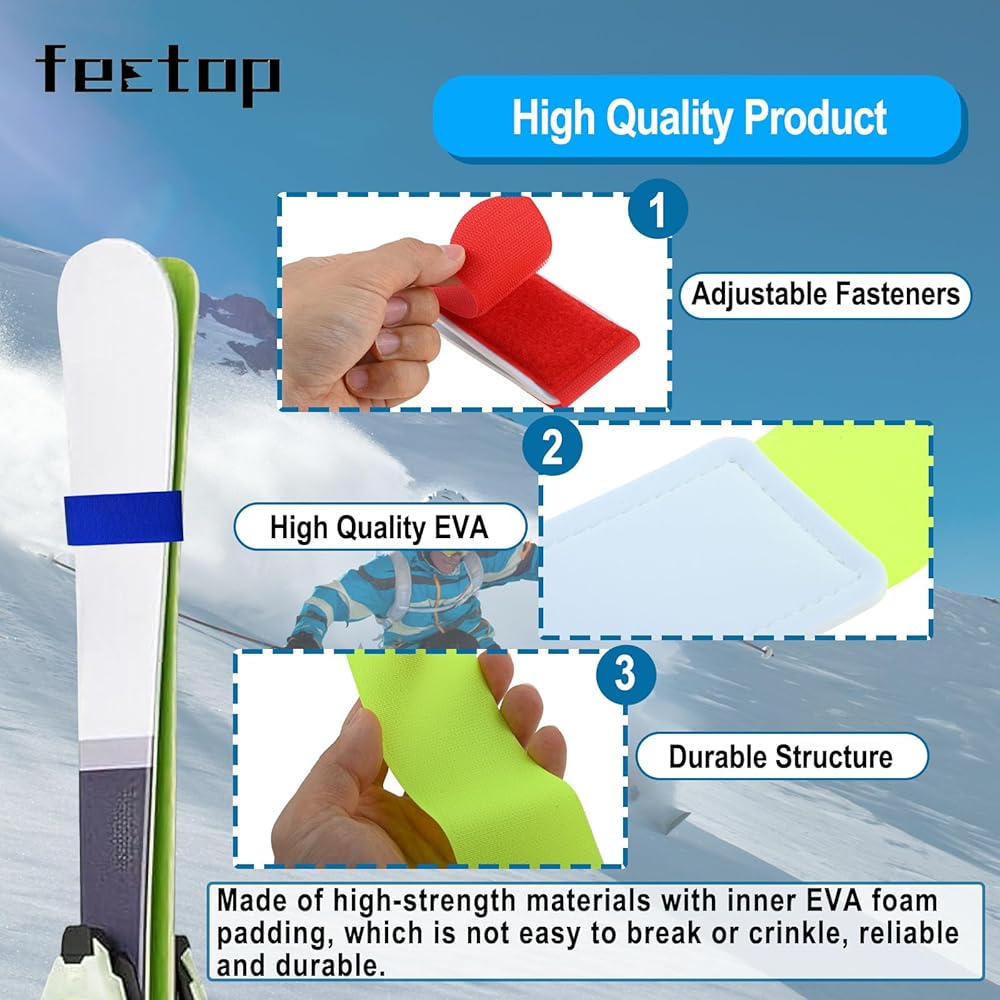 12 قطعة من أشرطة التزلج، أشرطة حمل قابلة للتعديل للتزلج على الجليد مع وسادات حماية من مادة إي في إيه لحمل ألواح التزلج وأعمدة إكسسوارات الرياضات الشتوية (6 ألوان)