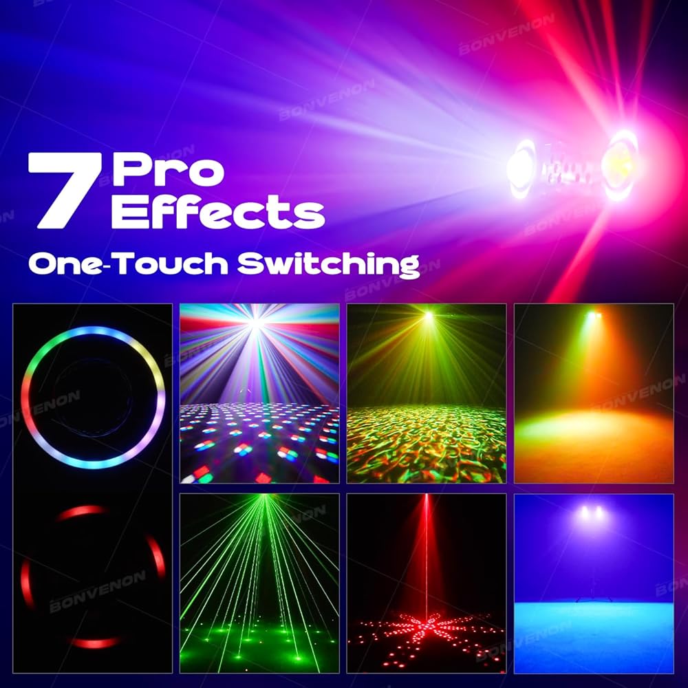 7 مؤثرات احترافية في ضوء واحد: قم بتحويل أي مساحة على الفور باستخدام 7 تأثيرات مدمجة: شعاع الكرة السحرية، وتموج الماء، وفتحة اللون، وستروب أرجواني، وغسل، ونمط أحمر، وسماء مرصعة بالنجوم الخضراء. تحكم بشكل مستقل في كل تأثير لتصميم جو حفلتك المثالي.