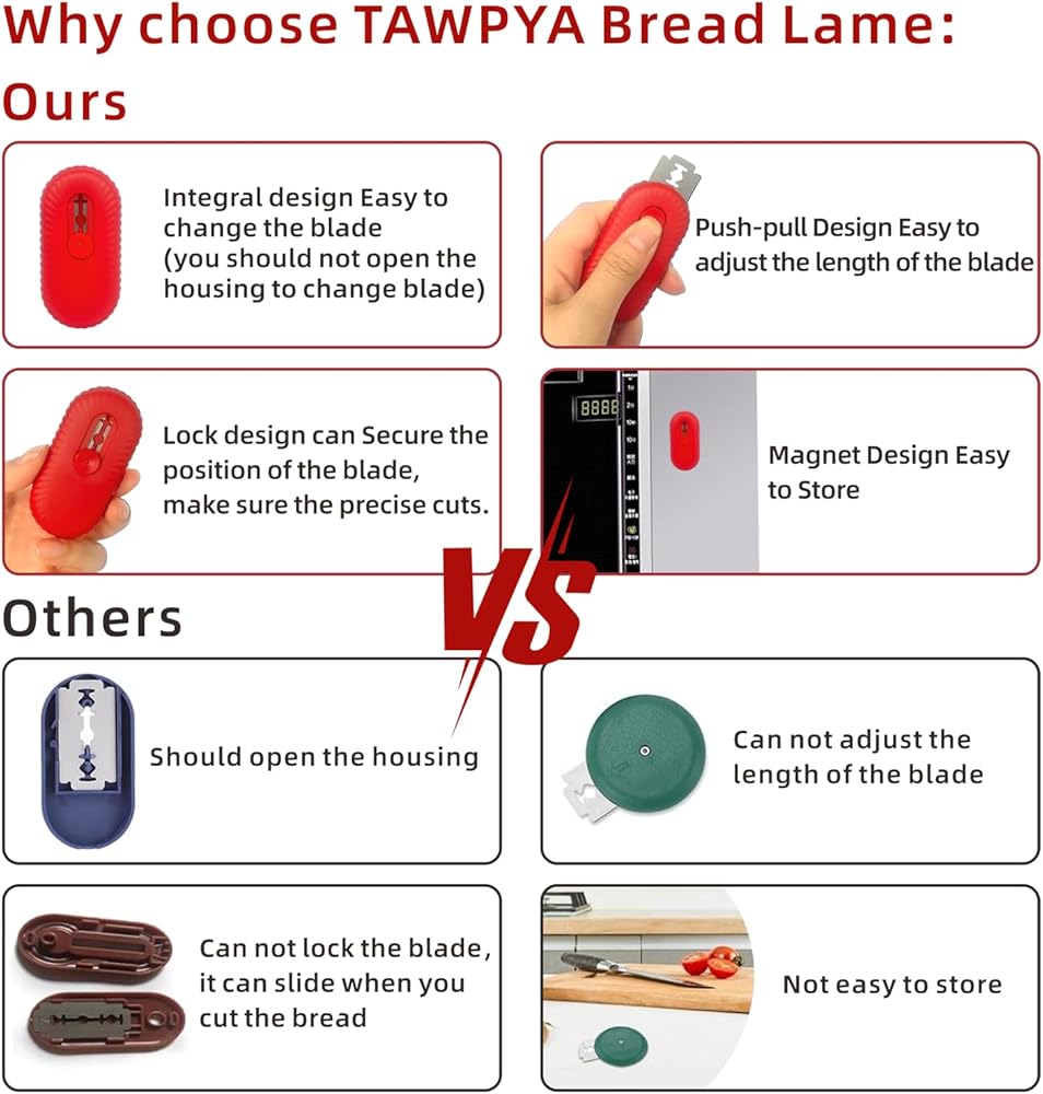 【 Durability】The bread scoring tools is well-crafted and comes with a sharp, durable stainless steel blade. The sharp blades glide effortlessly over the dough, creating beautiful patterns and designs for every piece of bread you bake. The ABS protective shell of bread lame tool provides extra protection and durability for long-lasting use.