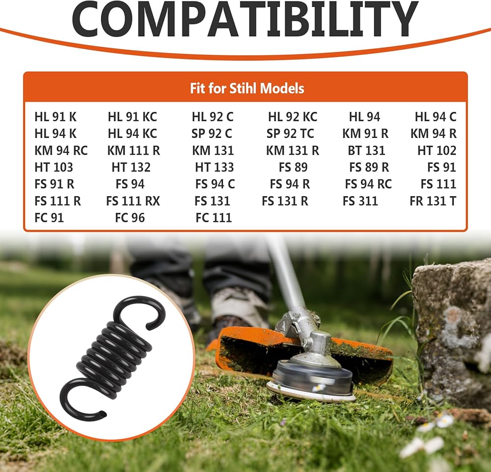 • العبوة: تتضمن خمس علامات تجارية - زنبرك قابض جديد لقواطع فرشاة Stihl.