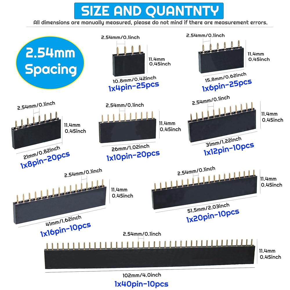 130 قطعة صف واحد 2.54 مللي متر مستقيم صف واحد لوحة دارات مطبوعة أنثى دبوس رأس موصل مقبس قطاع مجموعة متنوعة لدرع النموذج الأولي لاردوينو
