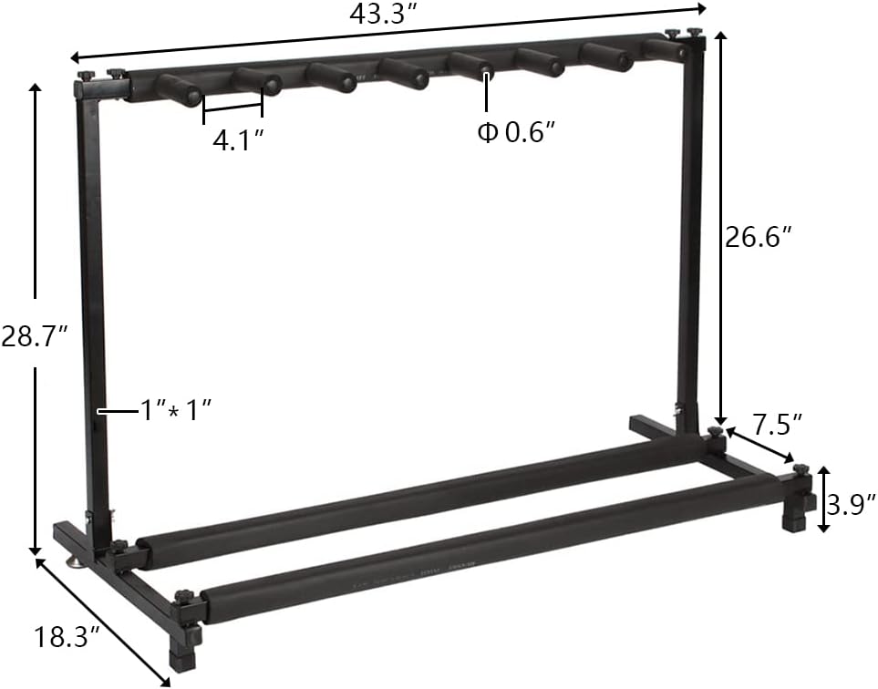 If you are a collector of guitar, you must have the storage problem. This Rack Style Guitar Stand can help you solve this problem. It can hold seven Guitars at the same time. Made of new and high quality, it is a very strong and sturdy tubular guitar stand. This rack would be possible to hold all guitars including acoustic guitars, electric guitars and bass guitars. Besides, the stand boasts rugged square-tube construction and holds your acoustic securely and it also can be folded up for easy transport. Order it now, and you'll receive all these benefits.