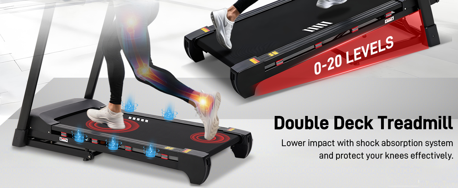【نظام امتصاص الصدمات 8+6 وطبقة مزدوجة معززة】مصممة لحماية المفاصل، جهاز المشي هذا ذو الميل يدمج 8 مخمدات زنبركية خارجية و6 وسائد سيليكون مدمجة لامتصاص الصدمات بكفاءة. تحتفظ مخمدات الزنبرك الخاصة بنا بشكلها بعد أكثر من 10000 اختبار تأثير للحصول على دعم دائم. يزيد السطح المزدوج السميك من امتصاص الصدمات ويوفر تجربة جري أكثر سلاسة، مما يجعله جهاز مشي ممتاز للحل المنزلي.