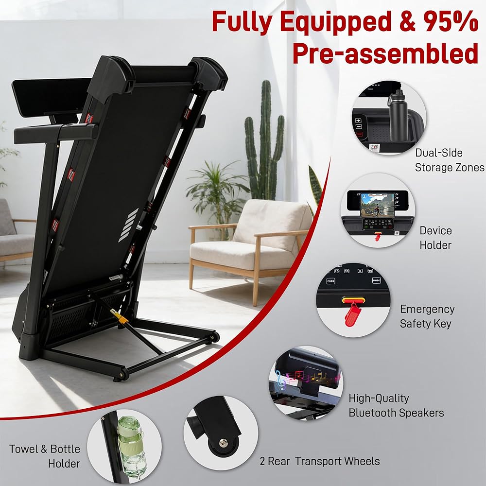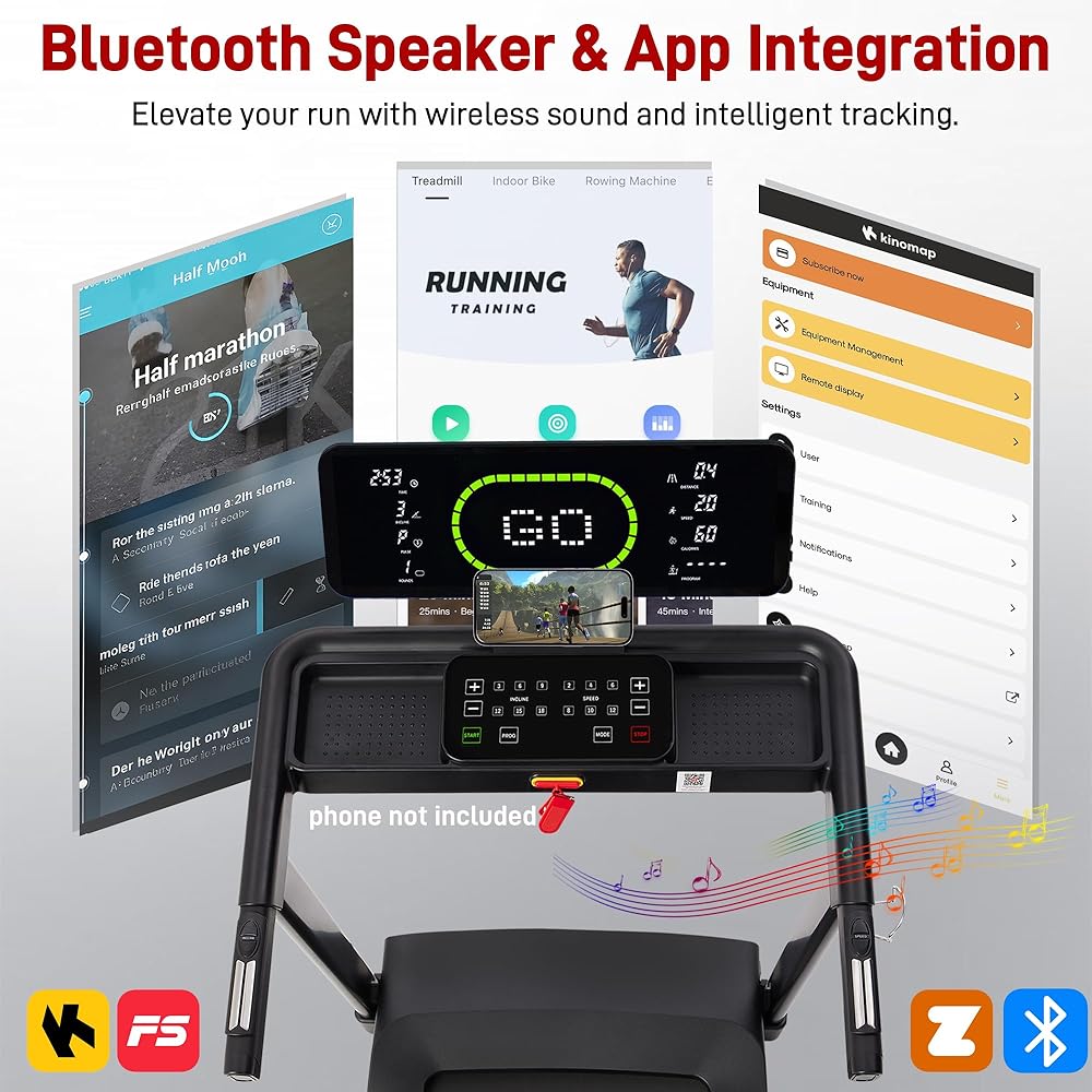 【مكبر صوت بلوتوث واتصال التطبيق】قم بتوصيل جهازك عبر البلوتوث لبث الموسيقى والمزامنة مع تطبيقات اللياقة البدنية للحصول على إحصائيات في الوقت الحقيقي والمسارات الافتراضية. يعمل جهاز المشي المتصل هذا للمنزل على تعزيز التحفيز ويساعدك على مراقبة الأداء في كل خطوة.