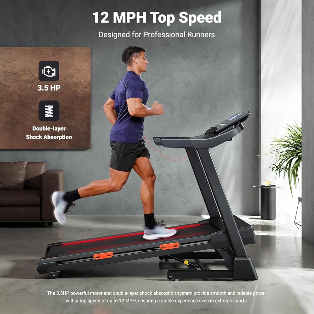 【Pro Performance at an Affordable Price】 – Get a high-value home treadmill that combines a 3.5 HP motor, 12 MPH speed, 20% auto incline, and a user-friendly console. It delivers pro-level performance for all fitness goals without the premium cost.