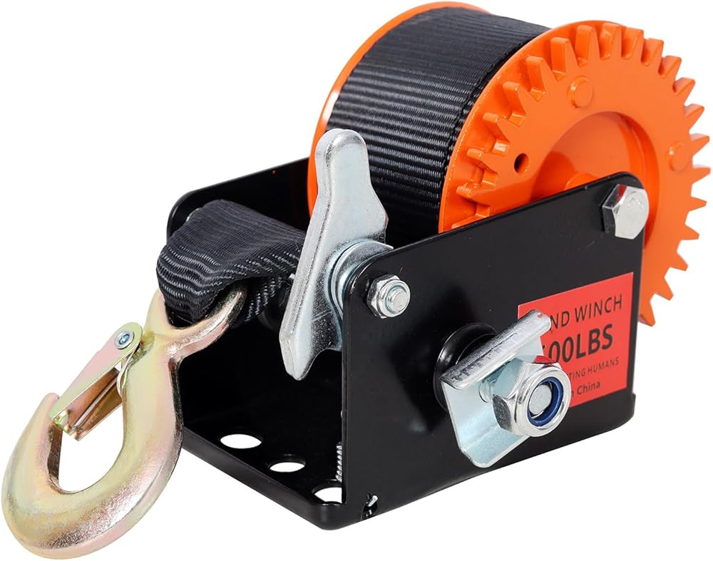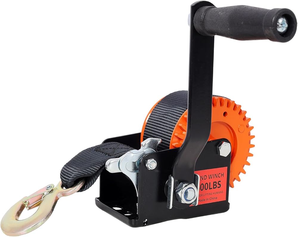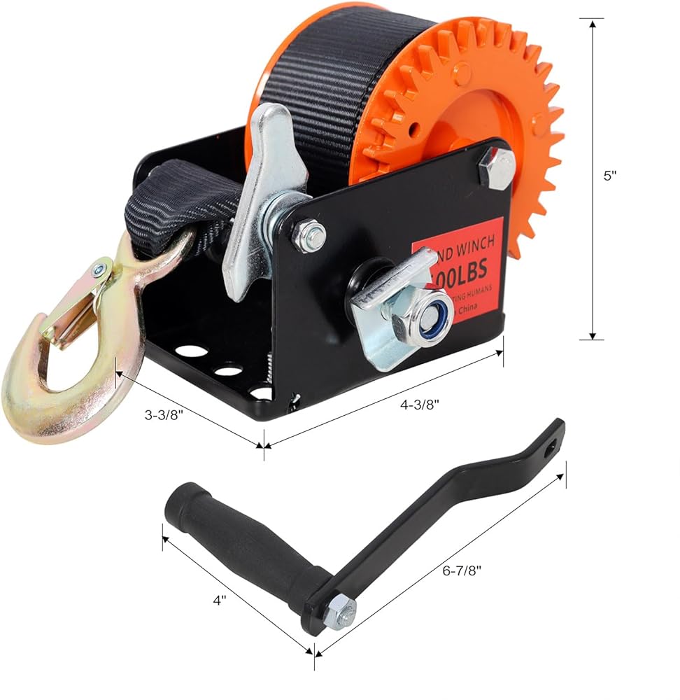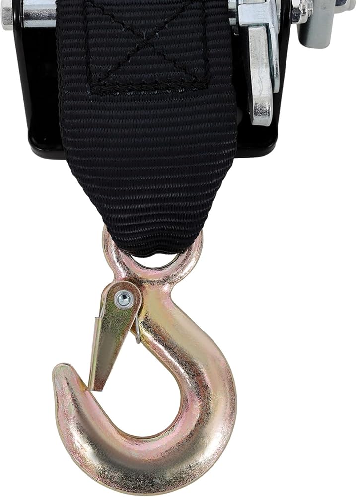 • 19.6 ft High-Strength Strap with Hook: Includes a 19.6 ft heavy-duty winch strap with steel hook, offering strong tensile strength and flexibility. Ideal for users who prefer a strap hand winch instead of steel cable.