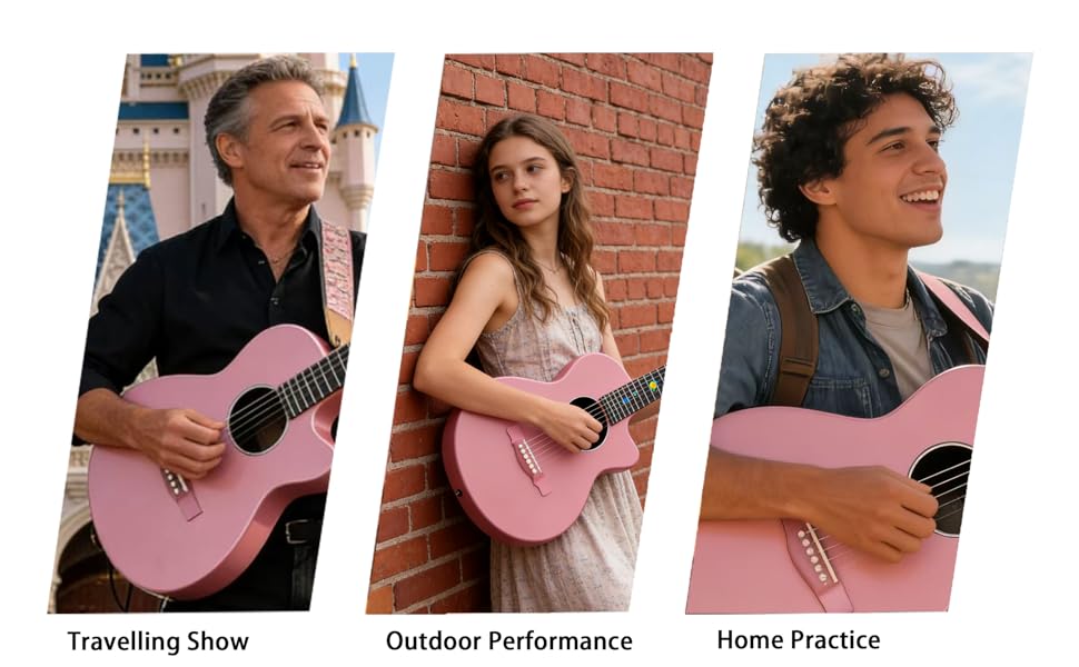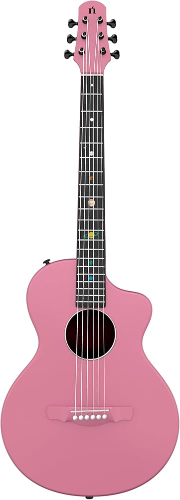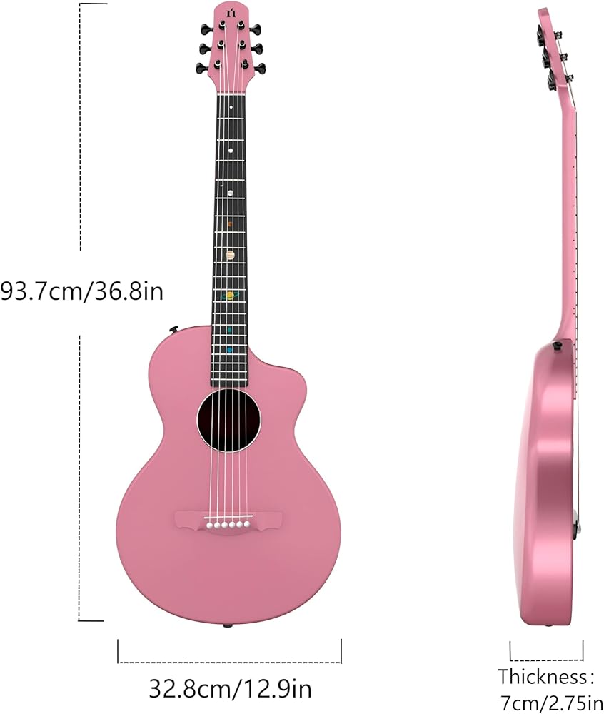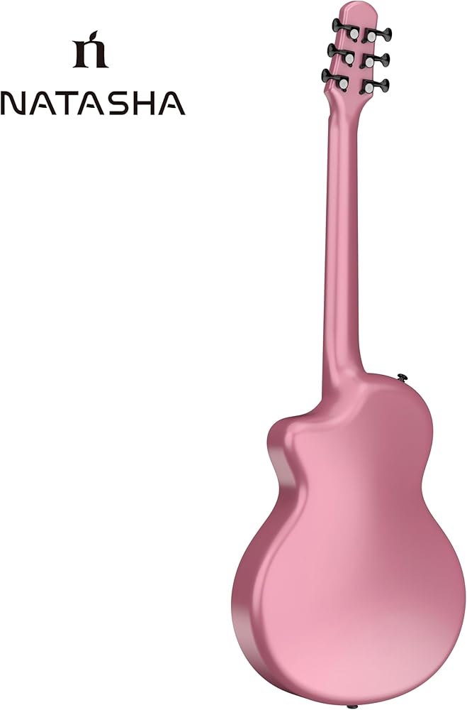 ناتاشا كويكب من ألياف الكربون 38 بوصة جيتار شعبي (زهر الكرز الوردي)، جيتار صوتي/جيتار السفر، صب متكامل مع مادة مركبة من ألياف الكربون، خفيف ومحمول