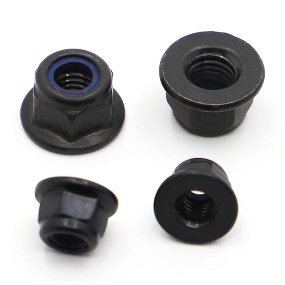 Black Zinc-Plated Carbon Steel Hex Hexagon Flange Nylon Insert Lock Nut M3 M4 M5 M6 M8 Self-locking Nylock Locknut, 10pcs