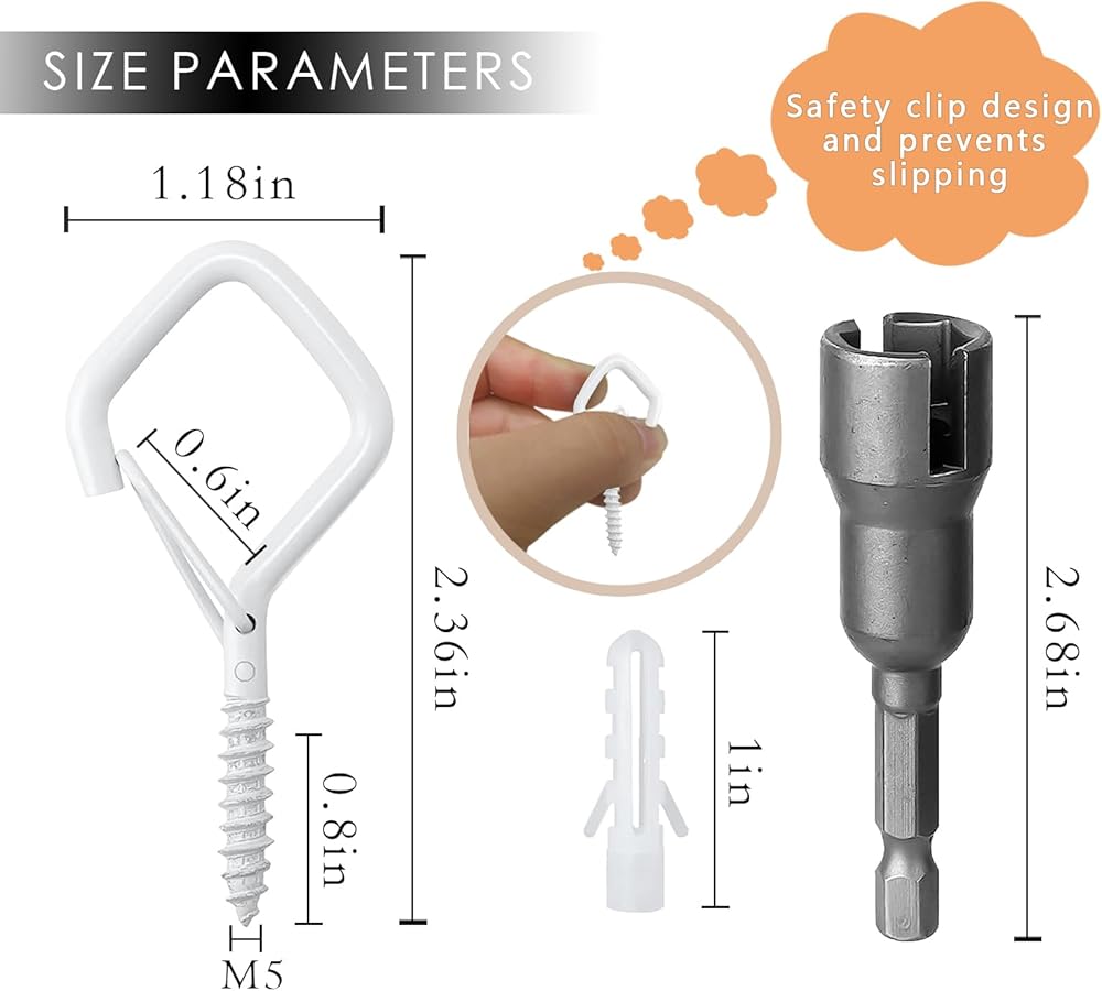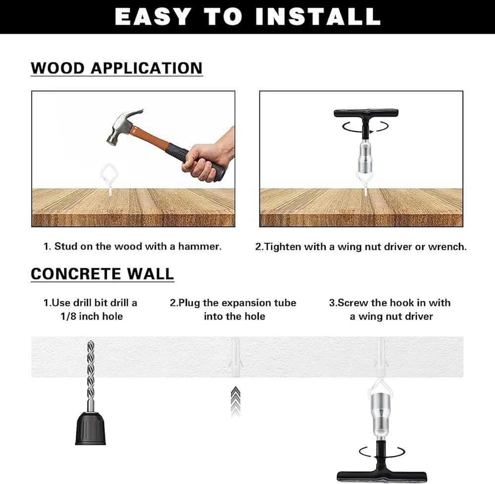Outdoor plant hooks are easy to install on wood, perfect for patios, decks, fences, etc. Each diamond hook comes with a plastic anchor for solid surfaces like drywall, windowsills, garages, ceilings, etc. Spiral hooks are perfect for hanging lighting items such as holiday lights, outdoor lights, drip lines, plants, birdhouses, curtains, ropes, wind chimes, feeders, flower pots, and more. Decorate your home and keep it clean and tidy.