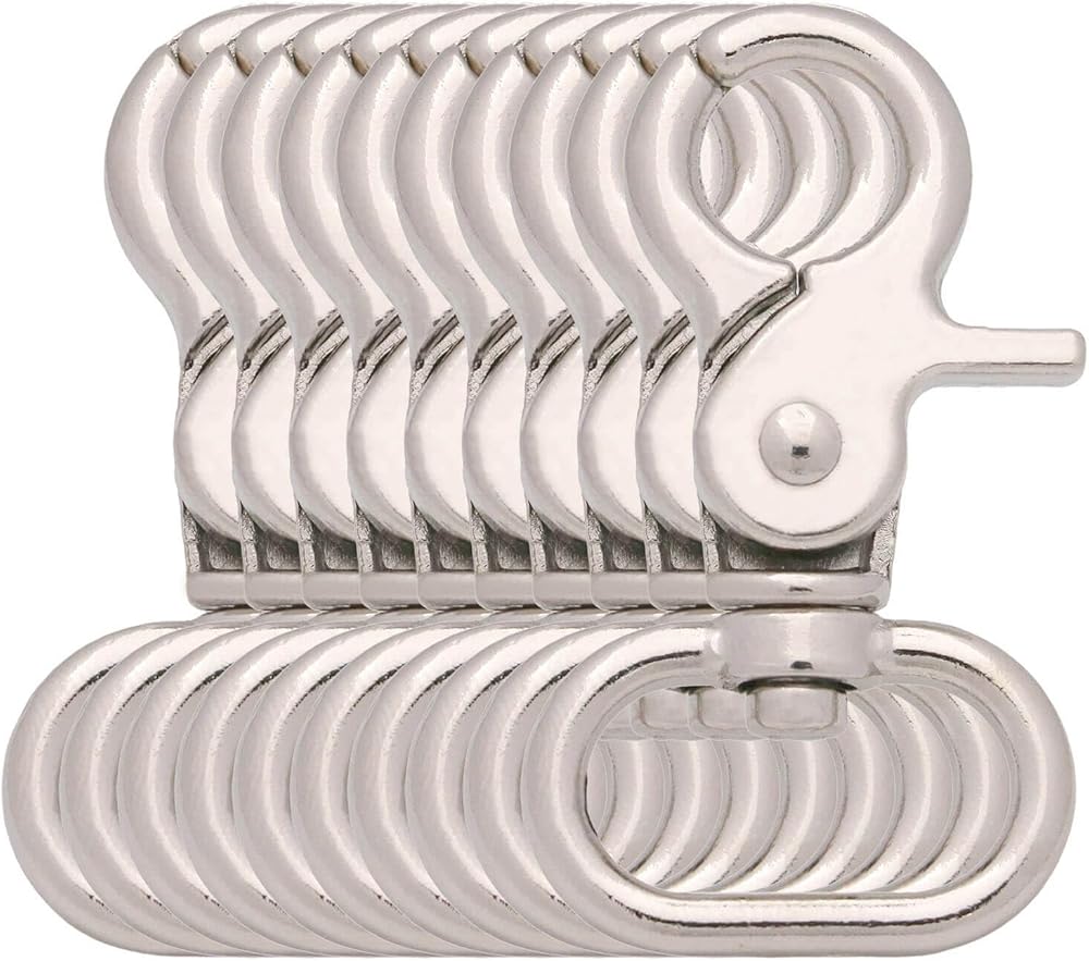 خطافات دوارة مزودة بمزلاج زنبركي من أجل تركيب سريع وسهل. يفتح حتى 1 بوصة، سريع وسهل الدمج مع المفاتيح والعلامات والأبازيم والمثبتات.