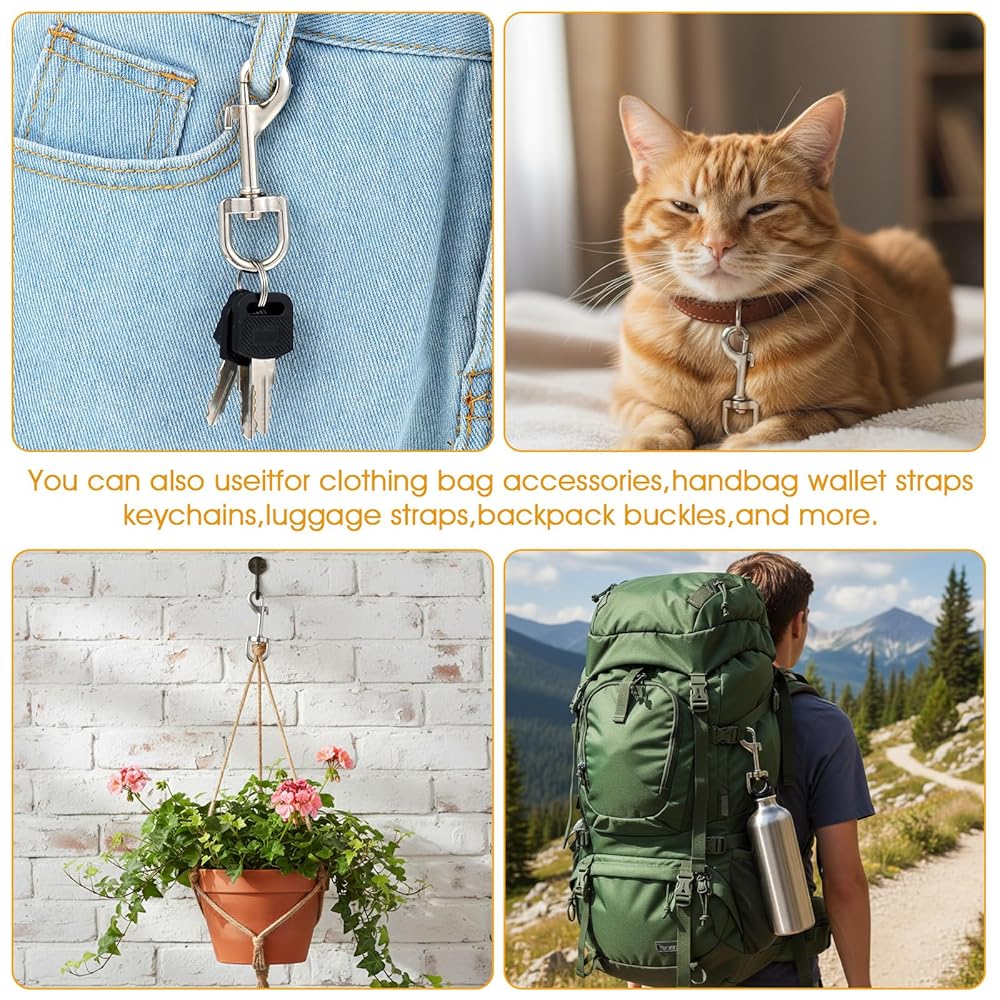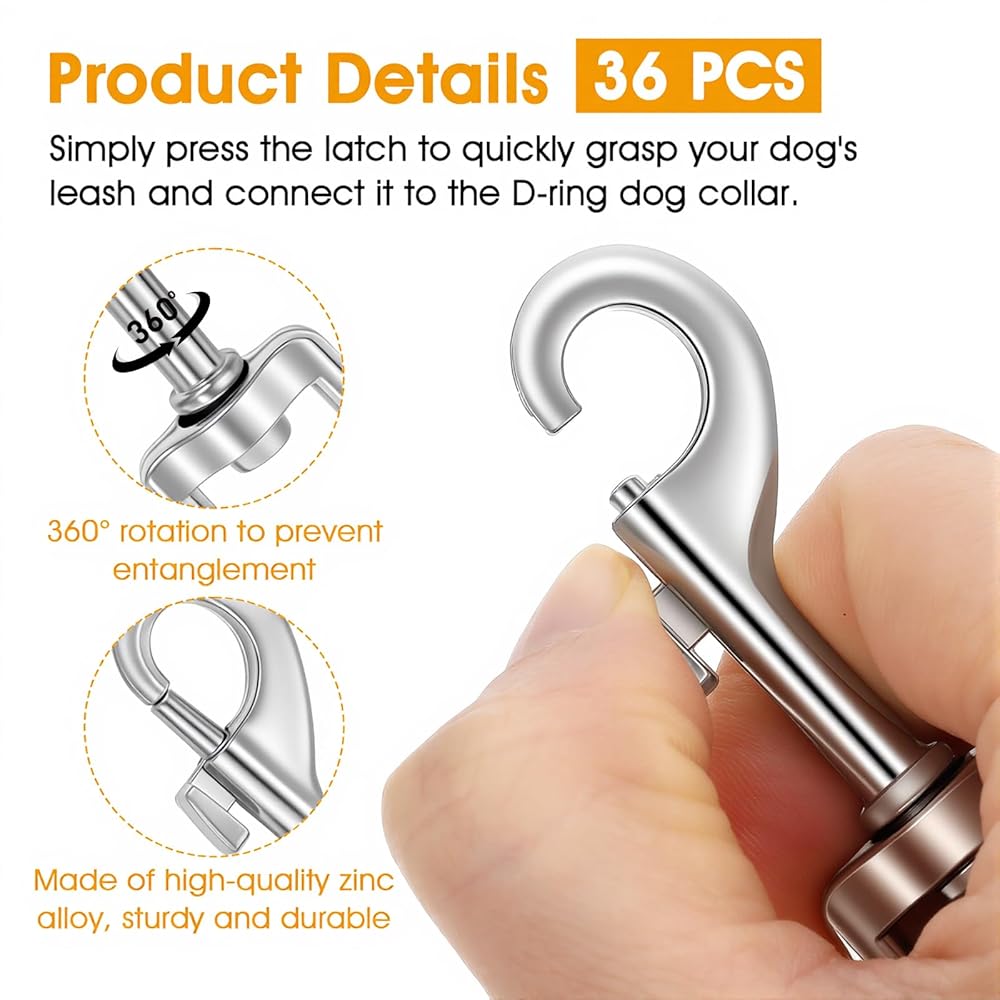 The hook is made of zinc alloy for a sturdy and non-deformable structure. The D-ring rotates 360°, effectively reduce tangling in the leash, making it convenient for pet leashes and daily use.